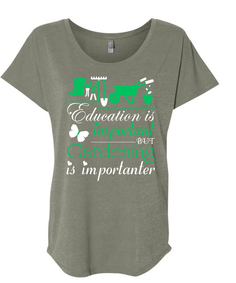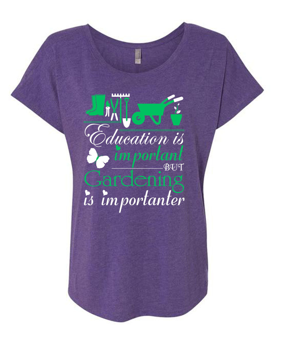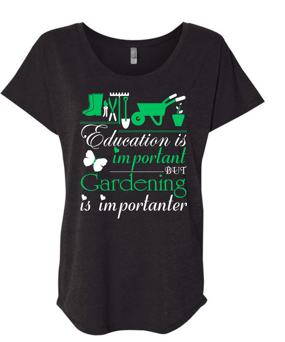 Education Is Important But Gardening Is Importanter T Shirt, I Love Gardening T Shirt, Cool Shirt (Ladies' Triblend Dolman Sleeve)