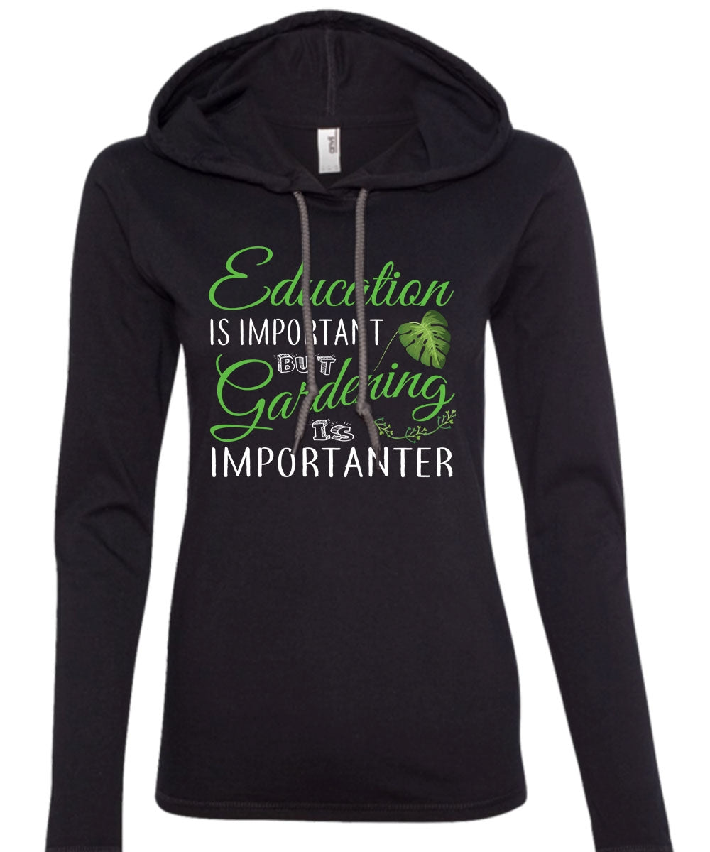 Education Is Important But Gardening Is Importanter T Shirt, School T Shirt (Anvil Ladies Ringspun Hooded)