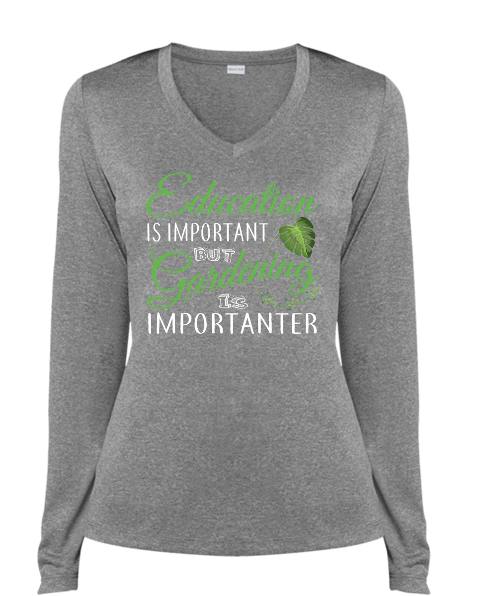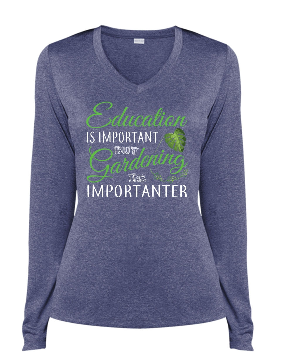 Education Is Important But Gardening Is Importanter T Shirt, School T Shirt (Ladies LS Heather V-Neck)