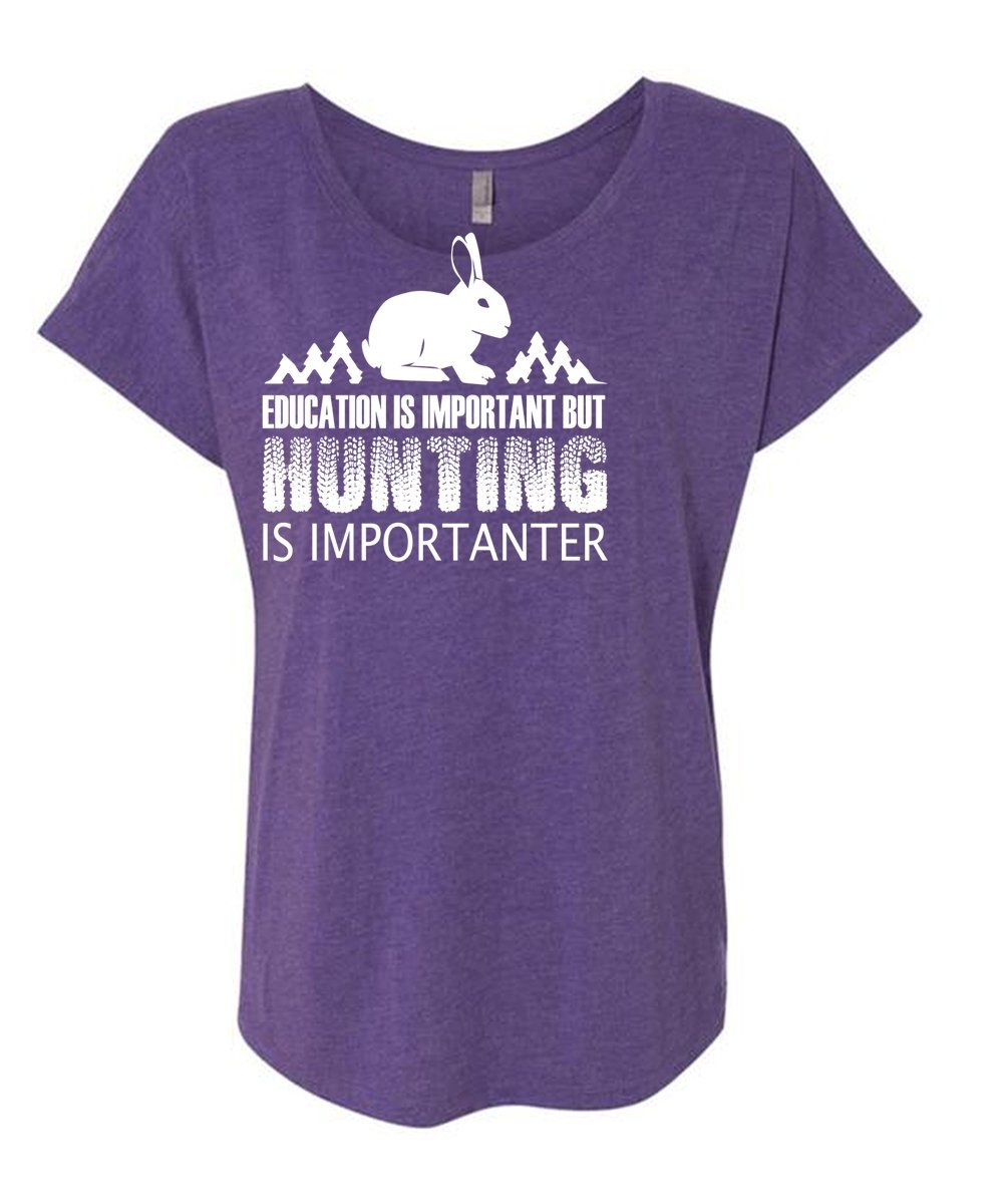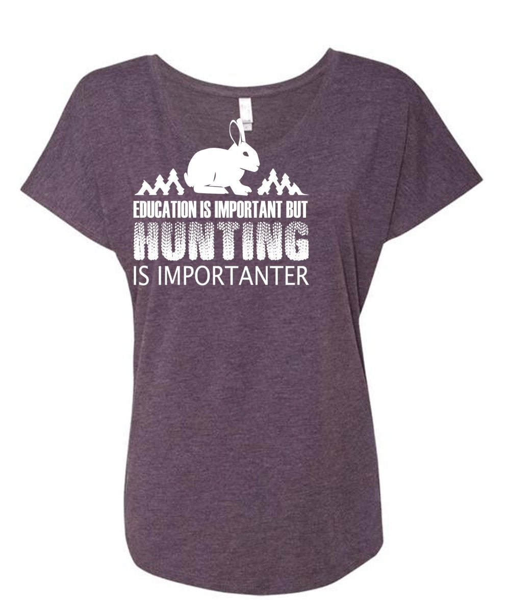 Education Is Important But Hunting Is Importanter T Shirt, Sport T Shirt (Ladies' Triblend Dolman Sleeve)