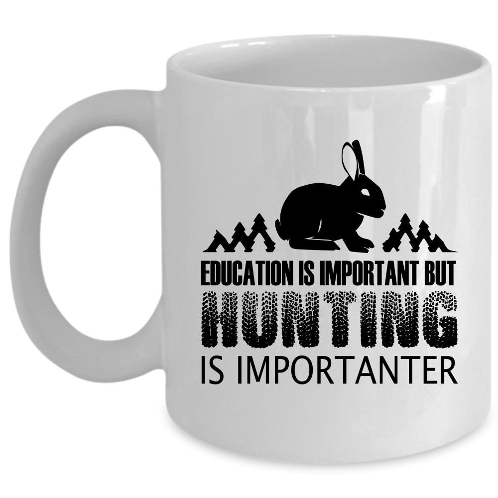 Education Is Important But Huting Is Importanter Cup (Coffee Mug - White)