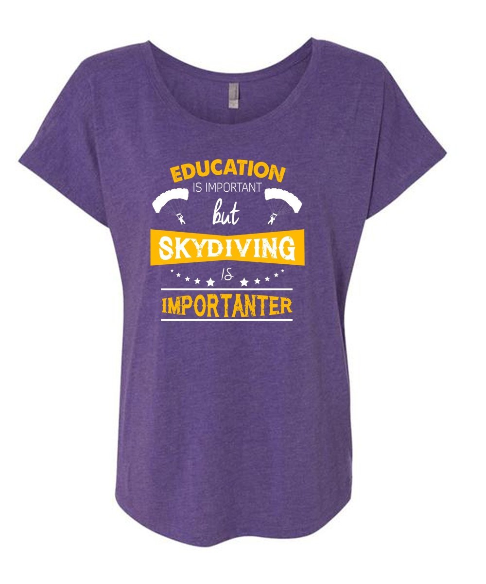 Education Is Important But Skydiving Is Importanter T Shirt, Sport T Shirt (Ladies' Triblend Dolman Sleeve)
