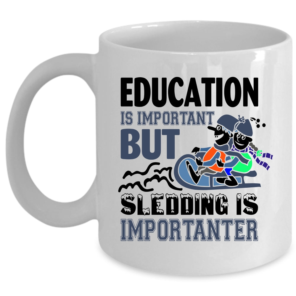Education Is Important But Sledding Is Importanter Cup (Coffee Mug - White)