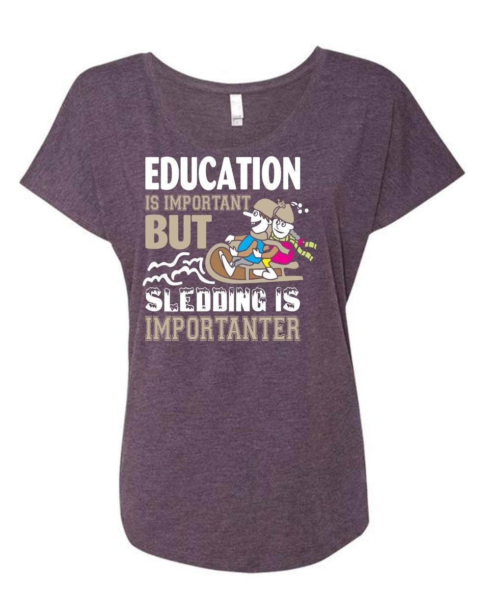 Education Is Important But Sledding Is Importanter T Shirt, Sport T Shirt (Ladies' Triblend Dolman Sleeve)
