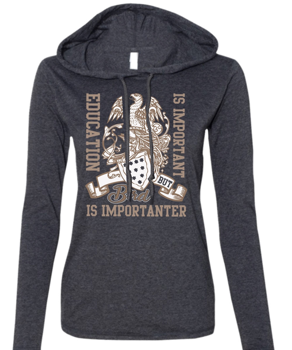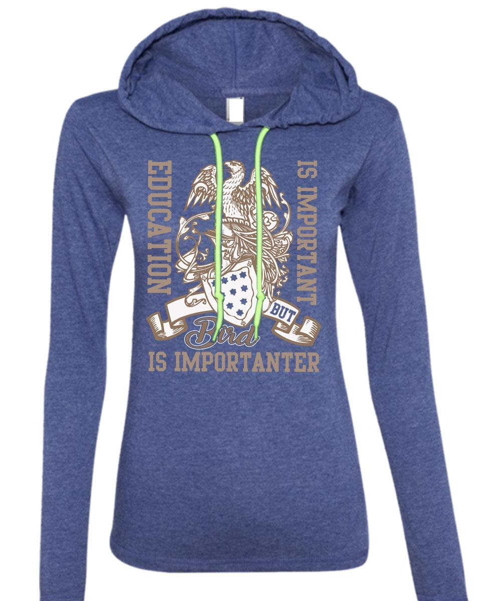 Education Is Important T Shirt, Bird Is Importanter T Shirt (Anvil Ladies Ringspun Hooded)