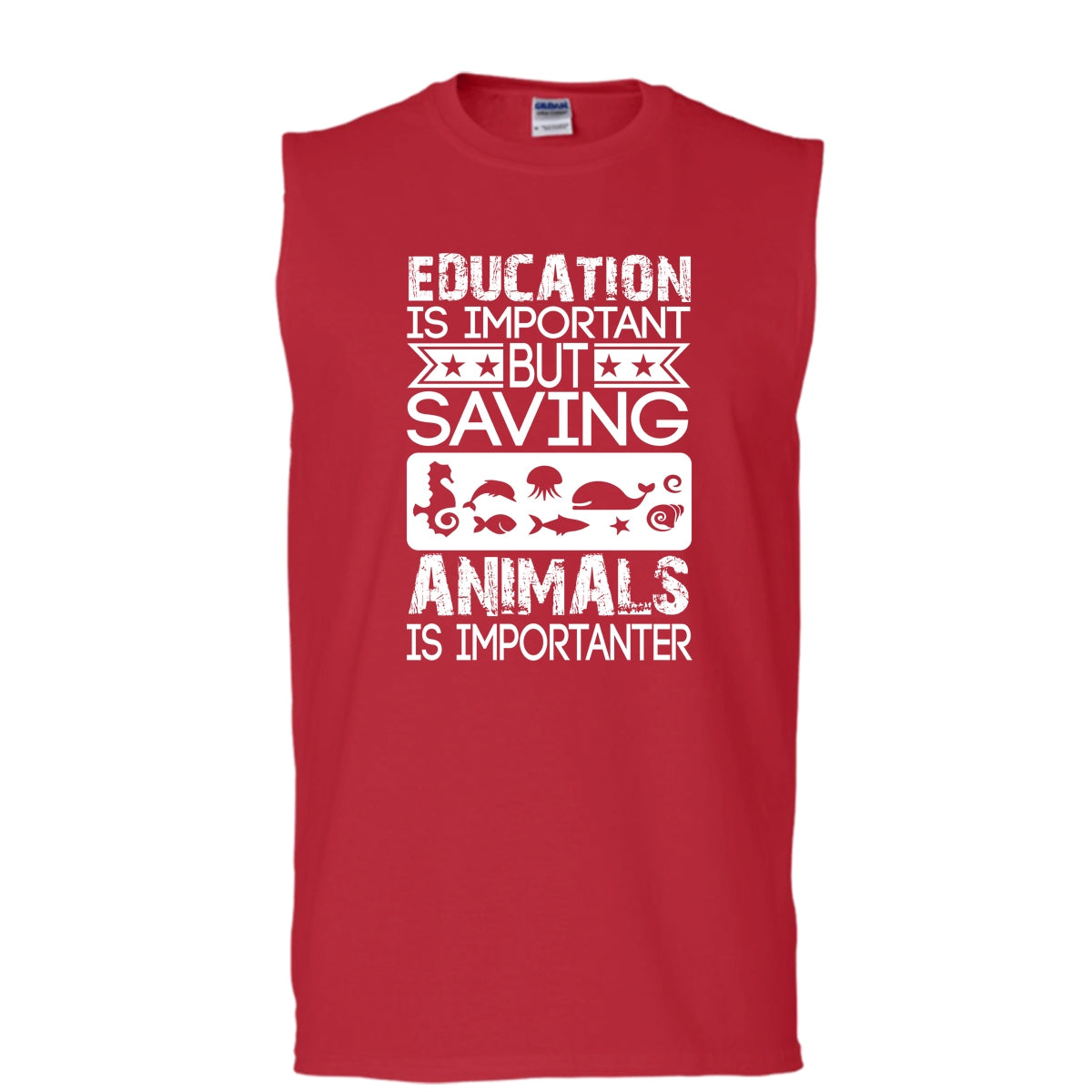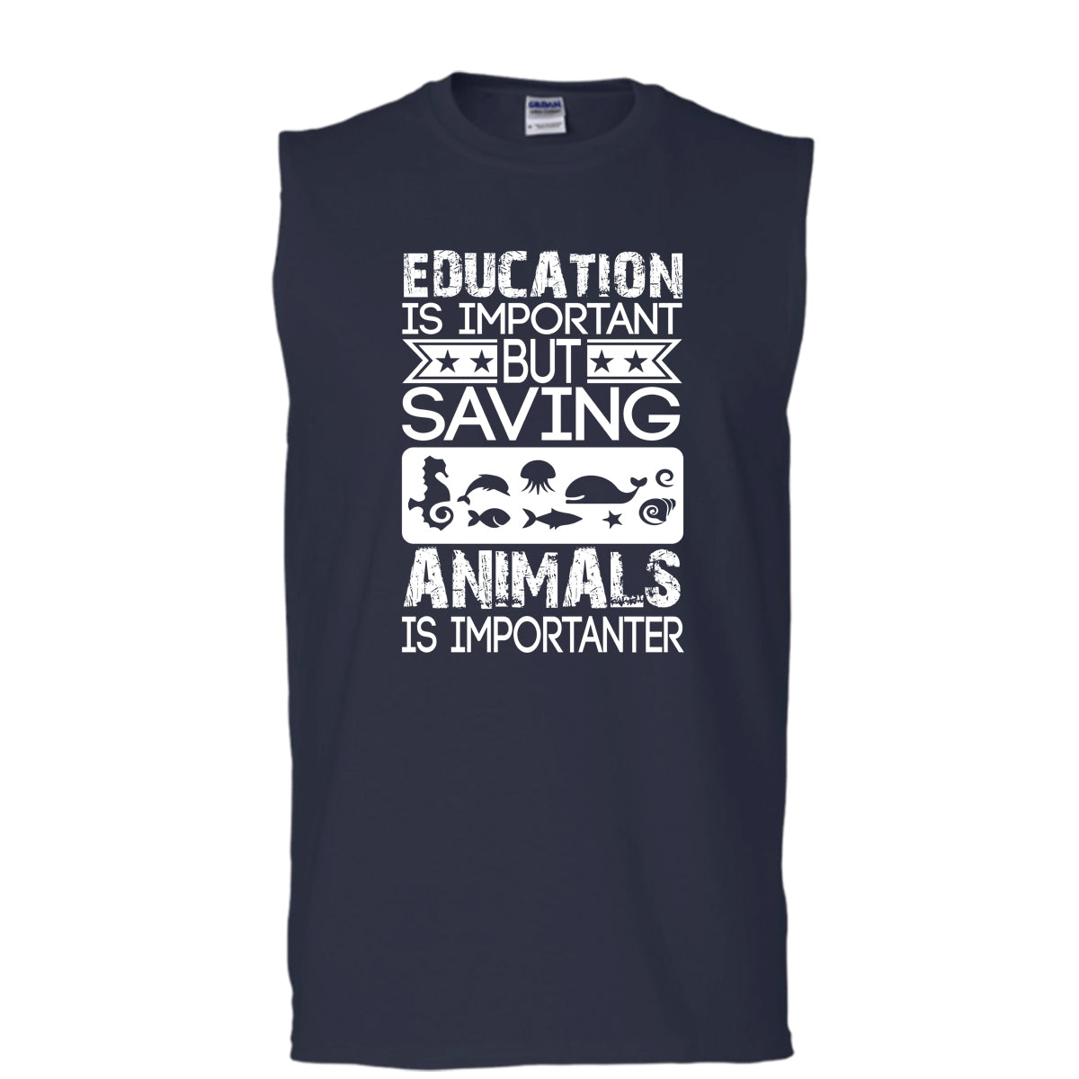 Education Is Important T Shirt, But Saving Animals Is Importanter T Shirt, Cool T Shirt (Men's Cotton Sleeveless)