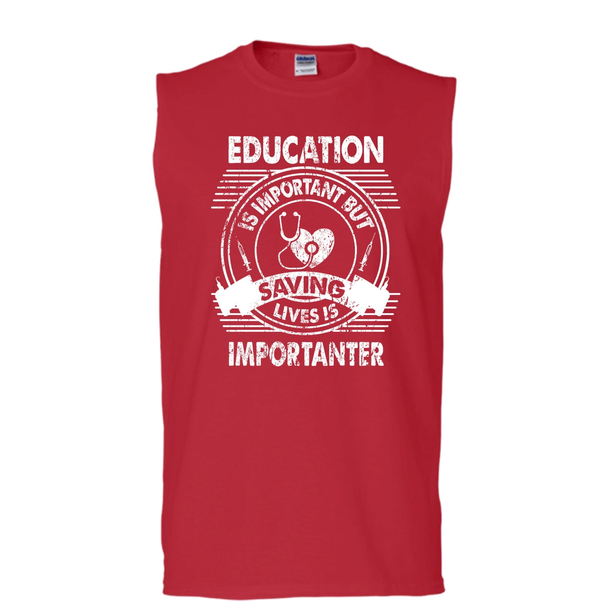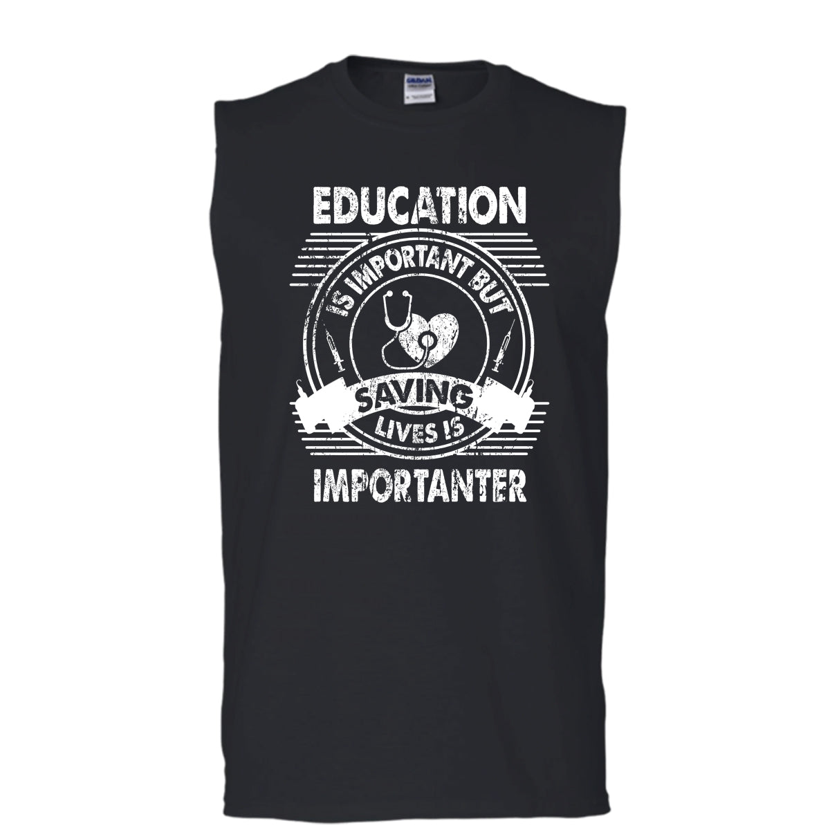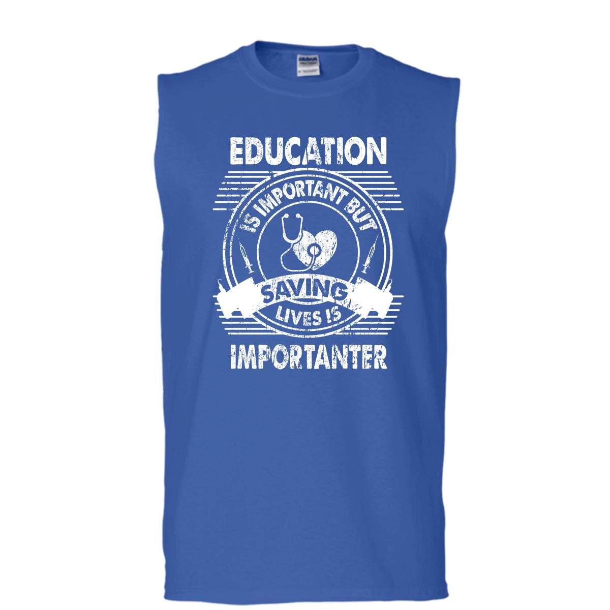 Education Is Important T Shirt, But Saving Lives Is Importanter T Shirt, Cool T Shirt (Men's Cotton Sleeveless)