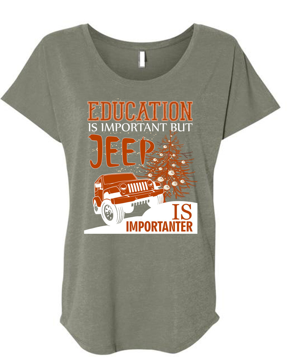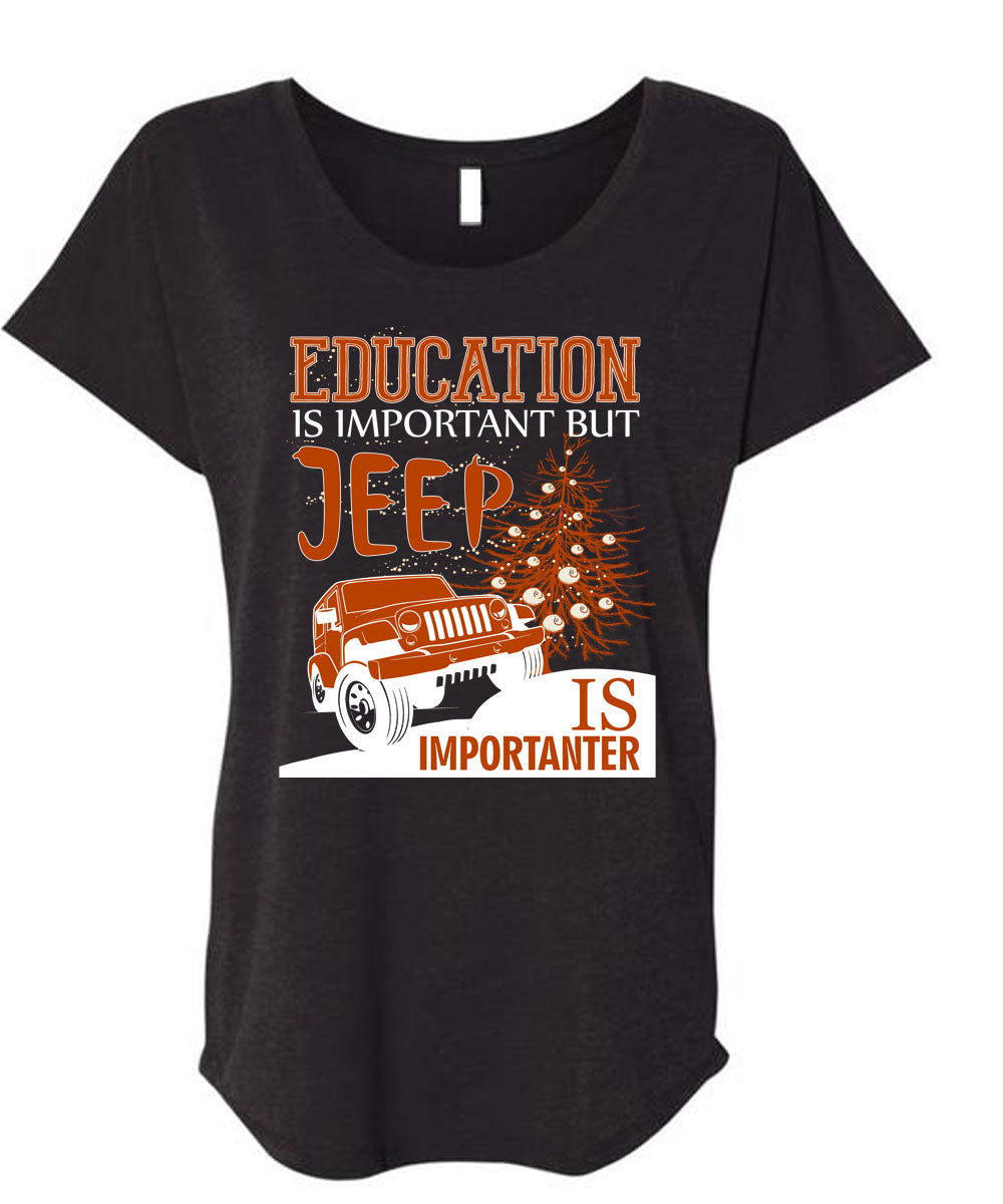 Education Is Important T Shirt, Jeep Is Importanter T Shirt, Cool Shirt (Ladies' Triblend Dolman Sleeve)