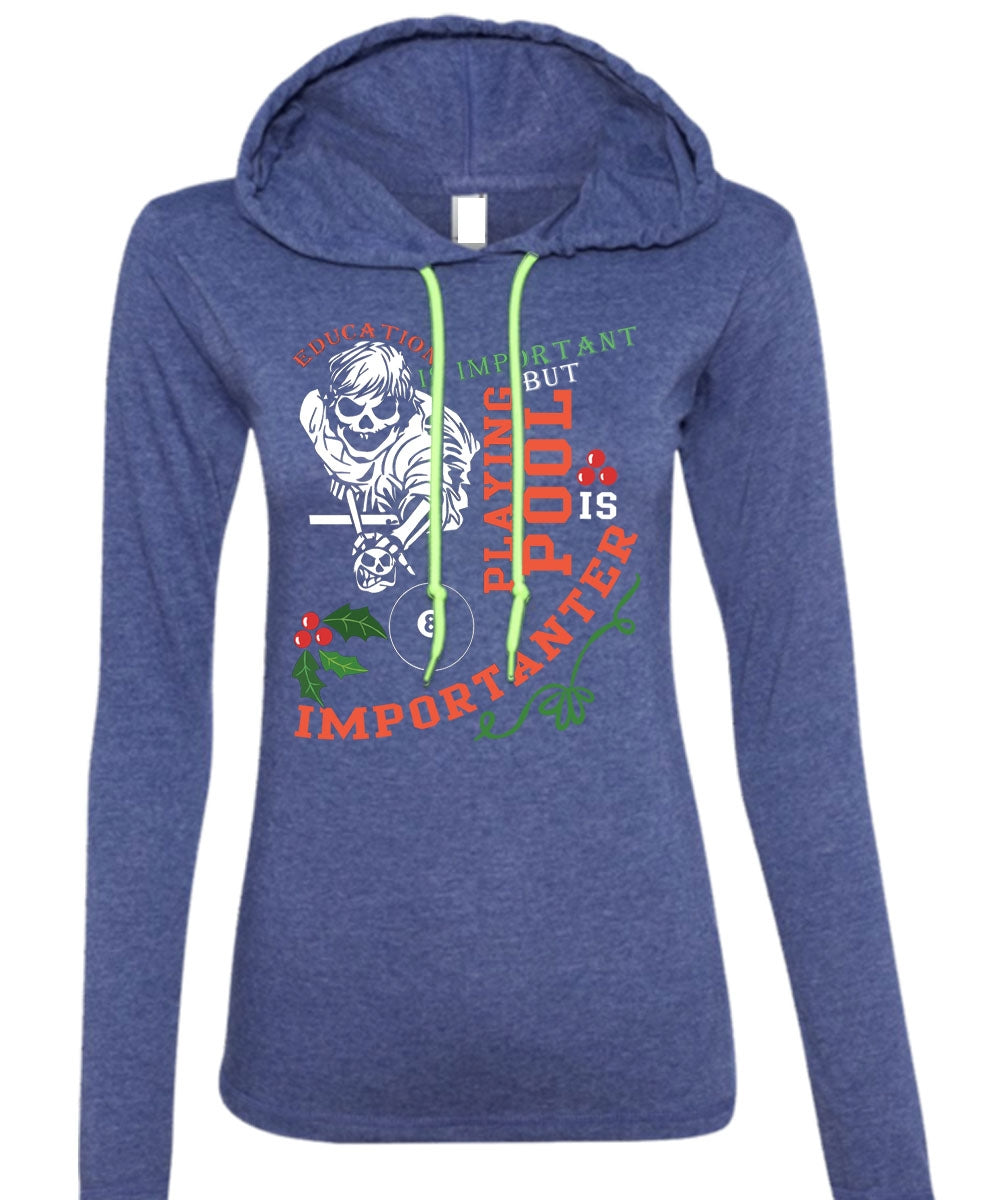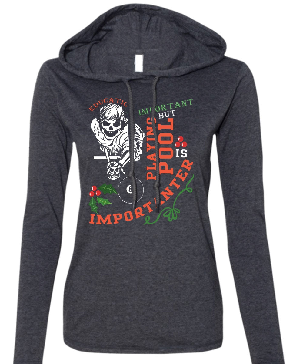 Education Is Important T Shirt, Playing Pool Is Importanter T Shirt (Anvil Ladies Ringspun Hooded)