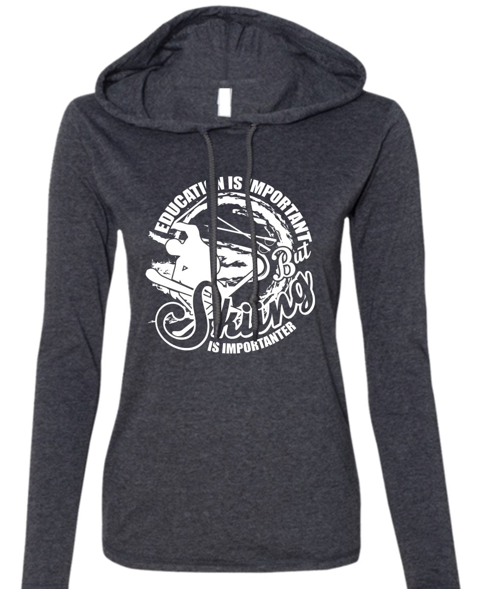 Education Is Important T Shirt, Skiing Is Importanter T Shirt (Anvil Ladies Ringspun Hooded)