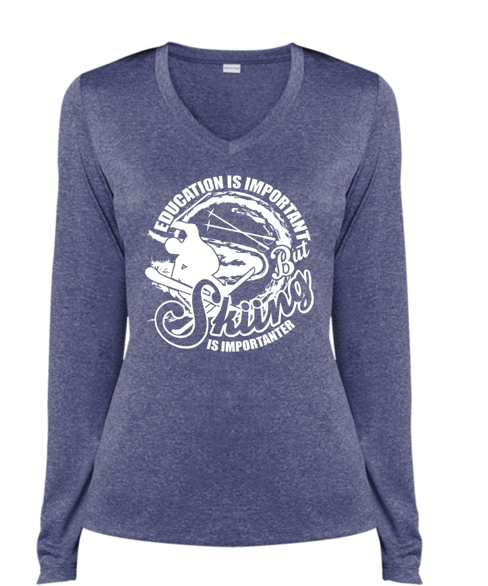 Education Is Important T Shirt, Skiing Is Importanter T Shirt, Cool Shirt (Ladies LS Heather V-Neck)