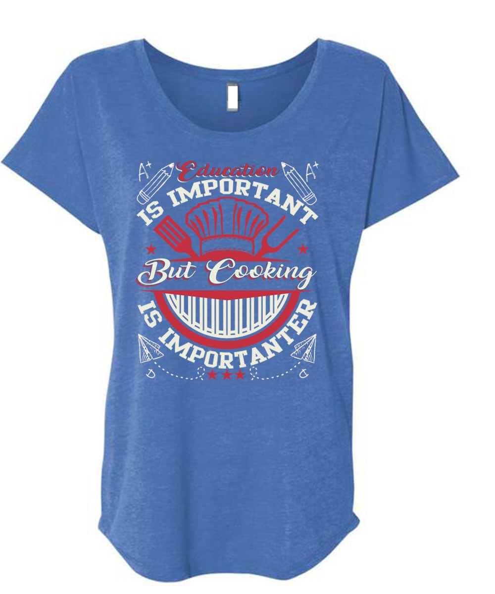 Education Is Importanter T Shirt, Cooking Is Importanter T Shirt, Cool Shirt (Ladies' Triblend Dolman Sleeve)