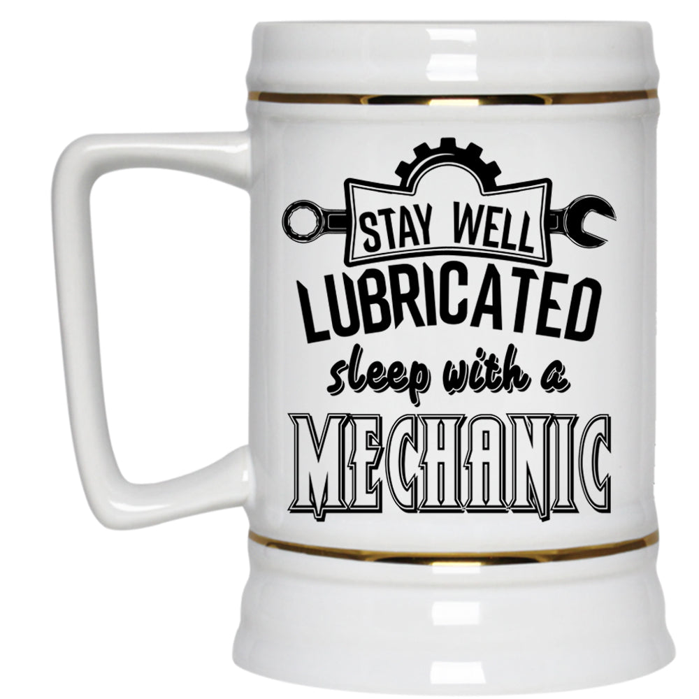Funny Beer Stein 22oz, Stay Well Lubricated Sleep With A Mechanic Beer Mug