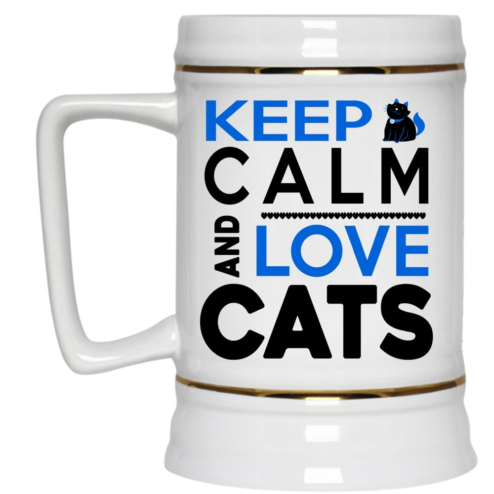 Funny Cat Lovers Beer Stein 22oz, Keep Calm And Love Cats Beer Mug