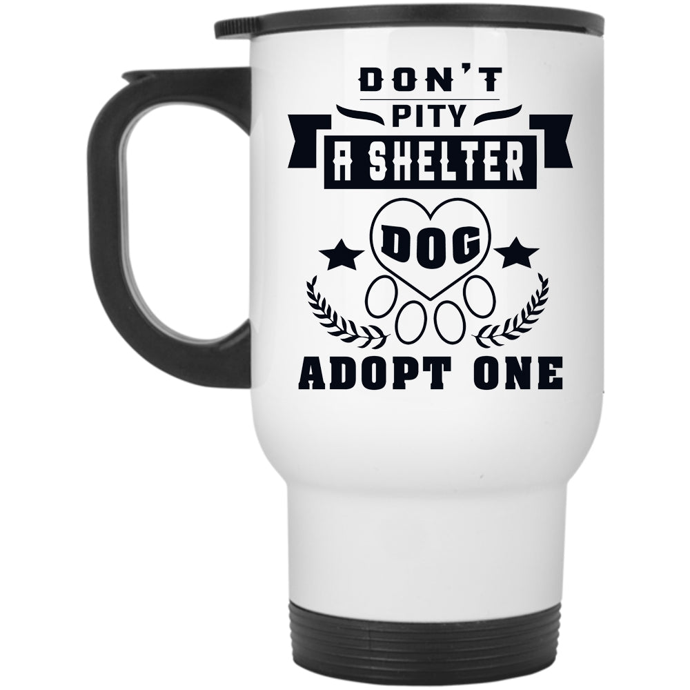 Funny Dogs Travel Mug, Don't Pity A Shelter Dog Adopt One Mug
