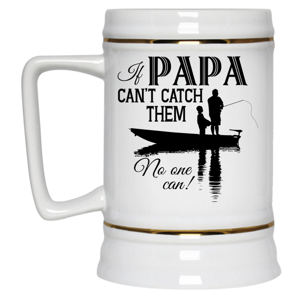 Funny Fishing Beer Stein 22oz, If Papa Can't Catch Them No One Can Beer Mug