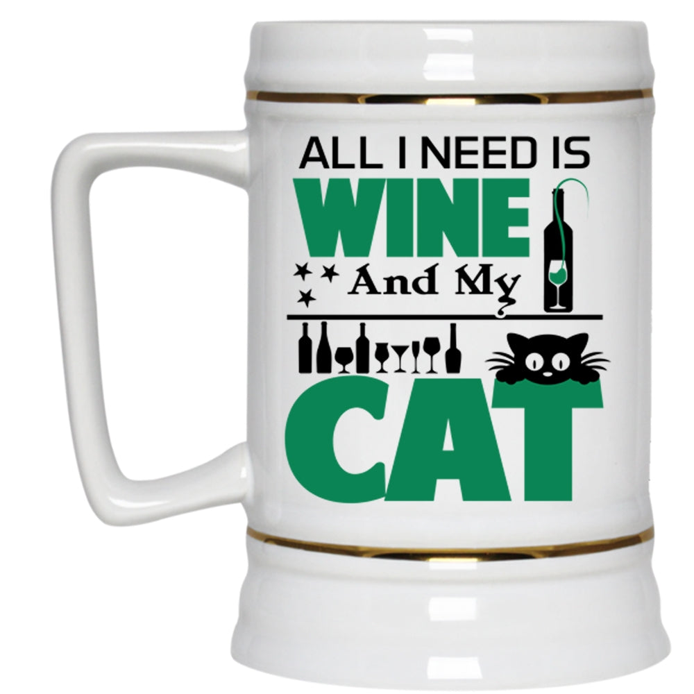 Funny Gift For Cat Lover Beer Stein 22oz, All I Need Is Wine And My Cat Beer Mug