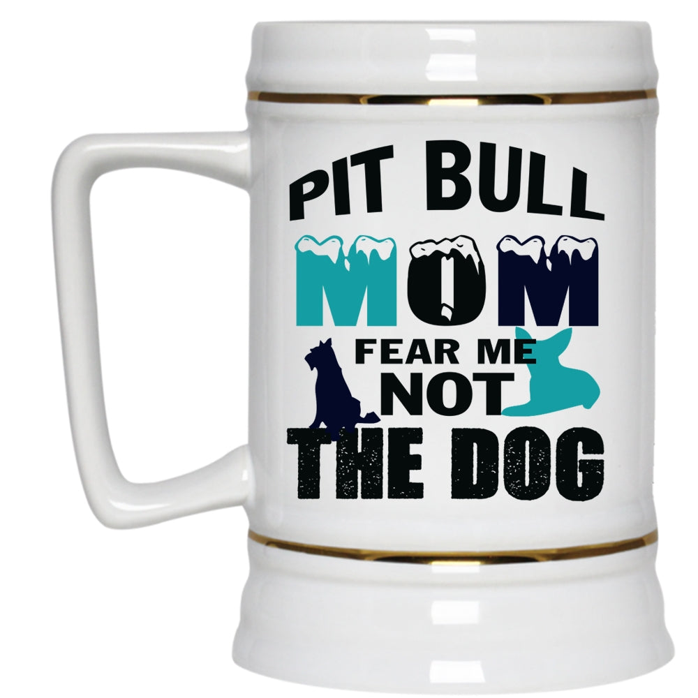 Funny Pitbull Mom Beer Stein 22oz, Pit Bull Mom Fear Me Not The Dog Beer Mug