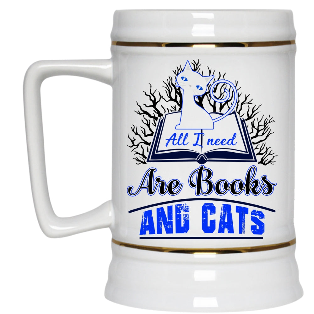 Gift For Book Reader Beer Stein 22oz, All I Need Are Books And Cats Beer Mug