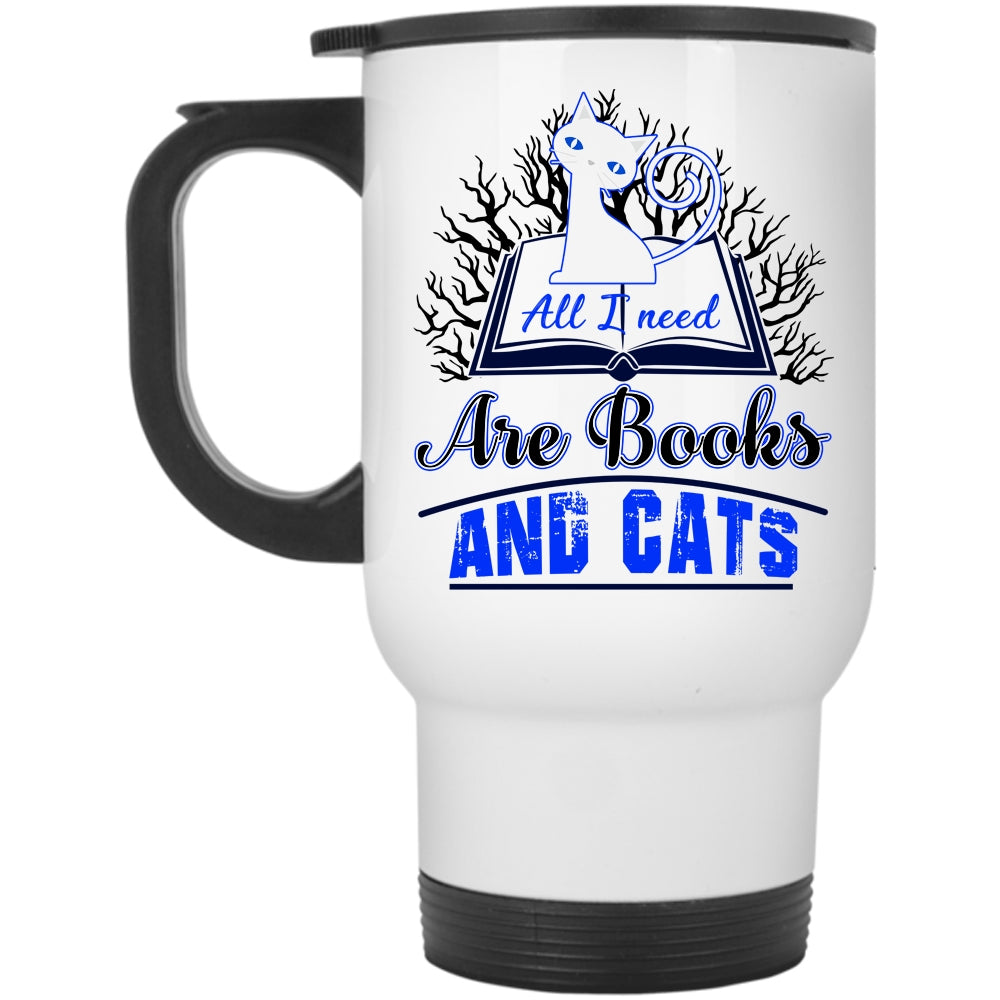 Gift For Book Reader Travel Mug, All I Need Are Books And Cats Mug