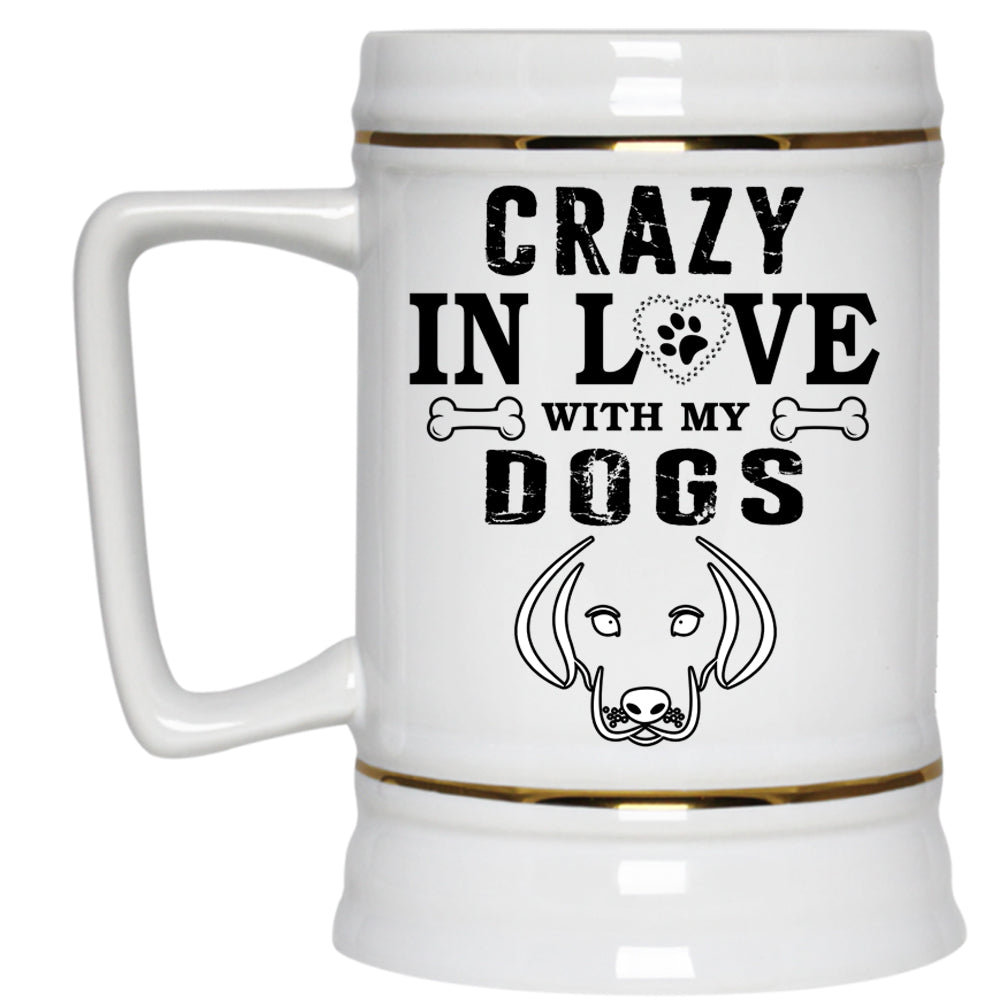 Gift For Dog Lovers Beer Stein 22oz, Crazy In Love With My Dogs Beer Mug