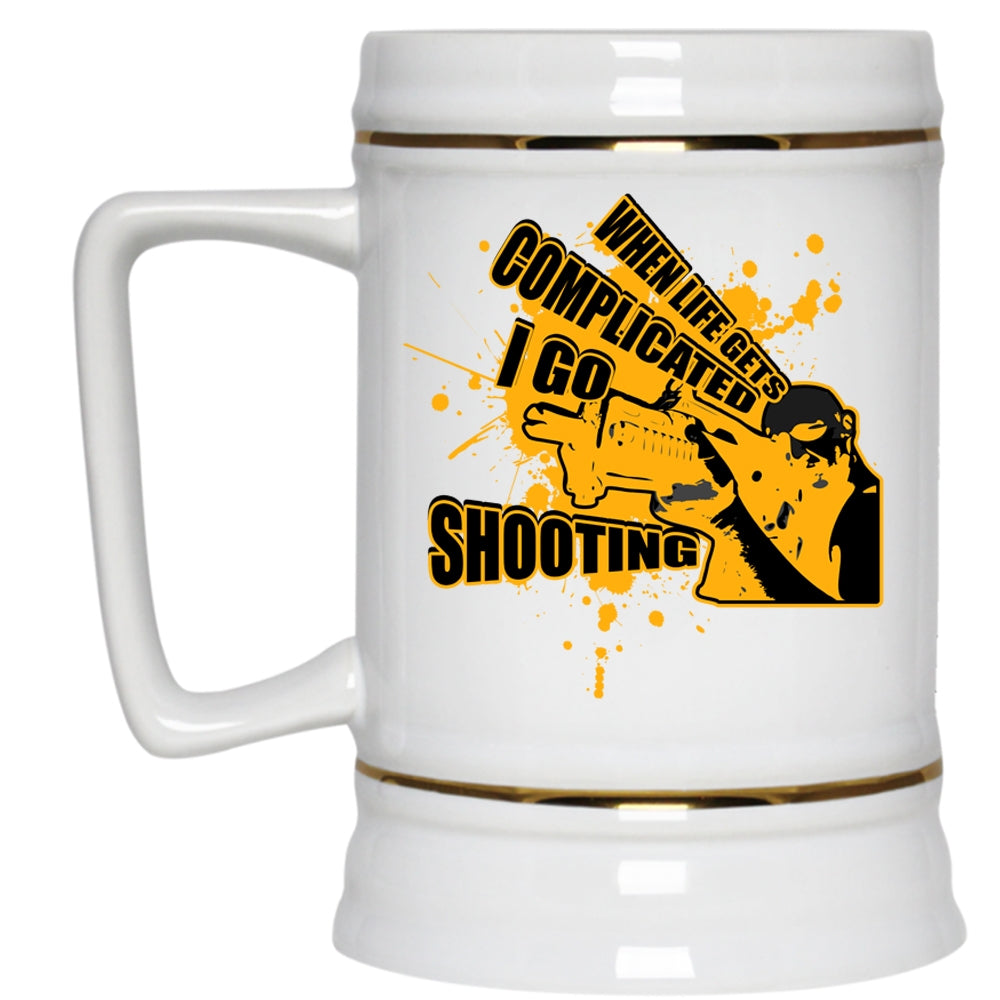 Go Shooting Beer Stein 22oz, When Life Gets Complicated I Go Shooting Beer Mug