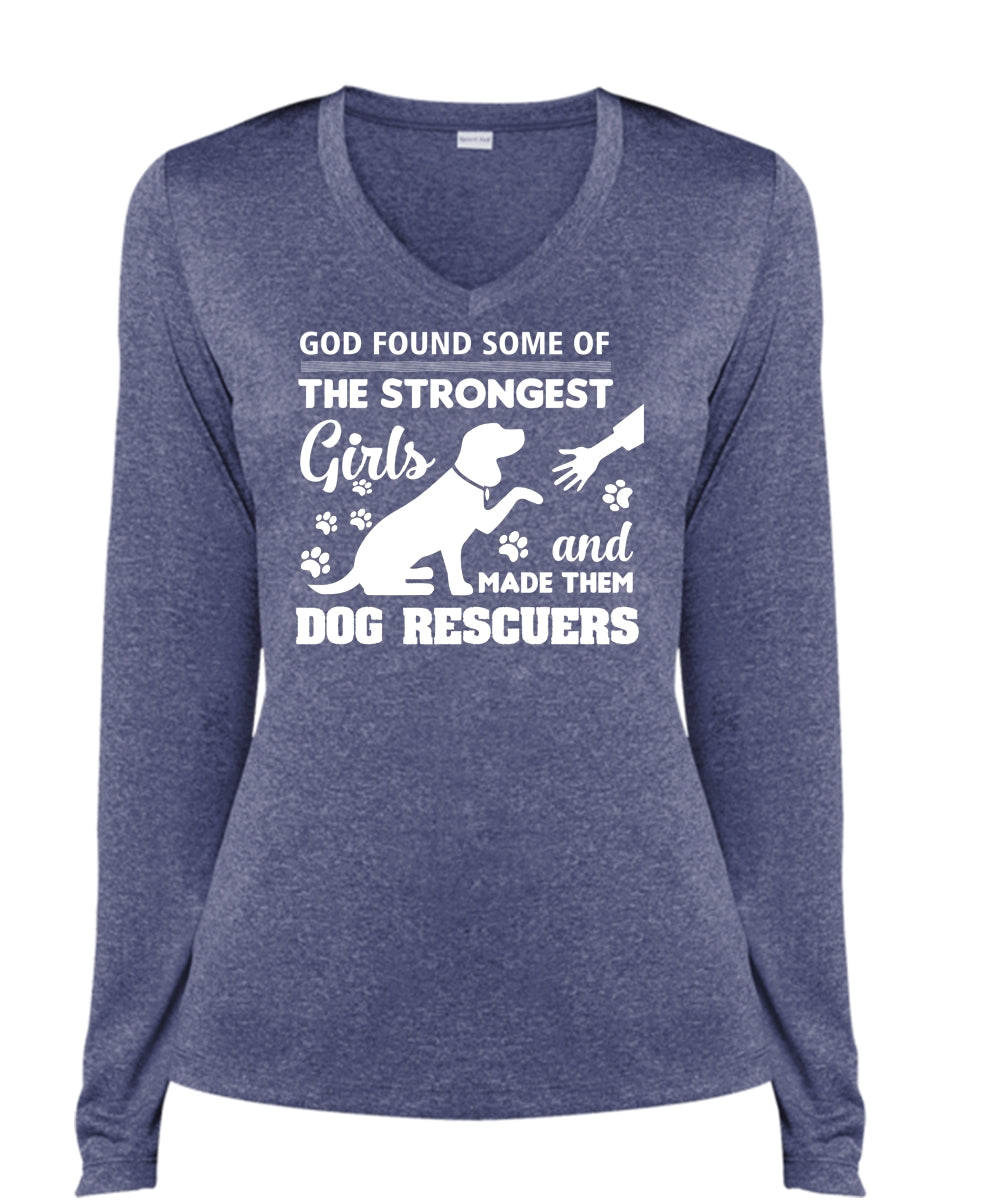 God Found Some Of The Strongest Girls And Made Them Dog Rescuers T Shirt, Pets T Shirt (Ladies LS Heather V-Neck)