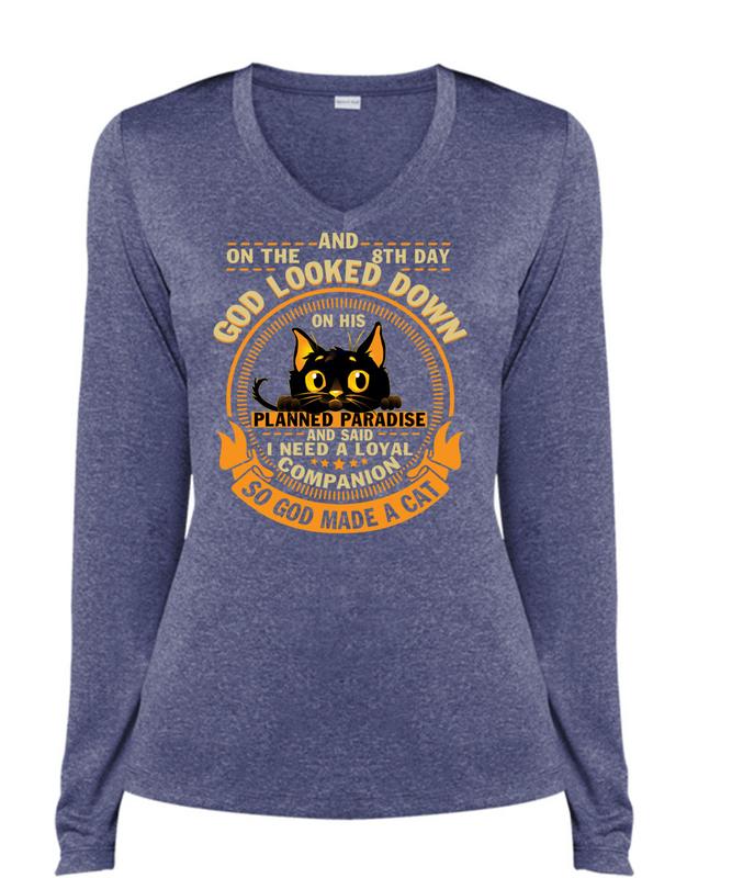 God Made A Cat T Shirt, God Looked Down T Shirt, Cool Shirt (Ladies LS Heather V-Neck)