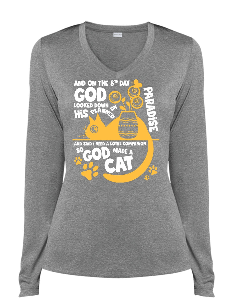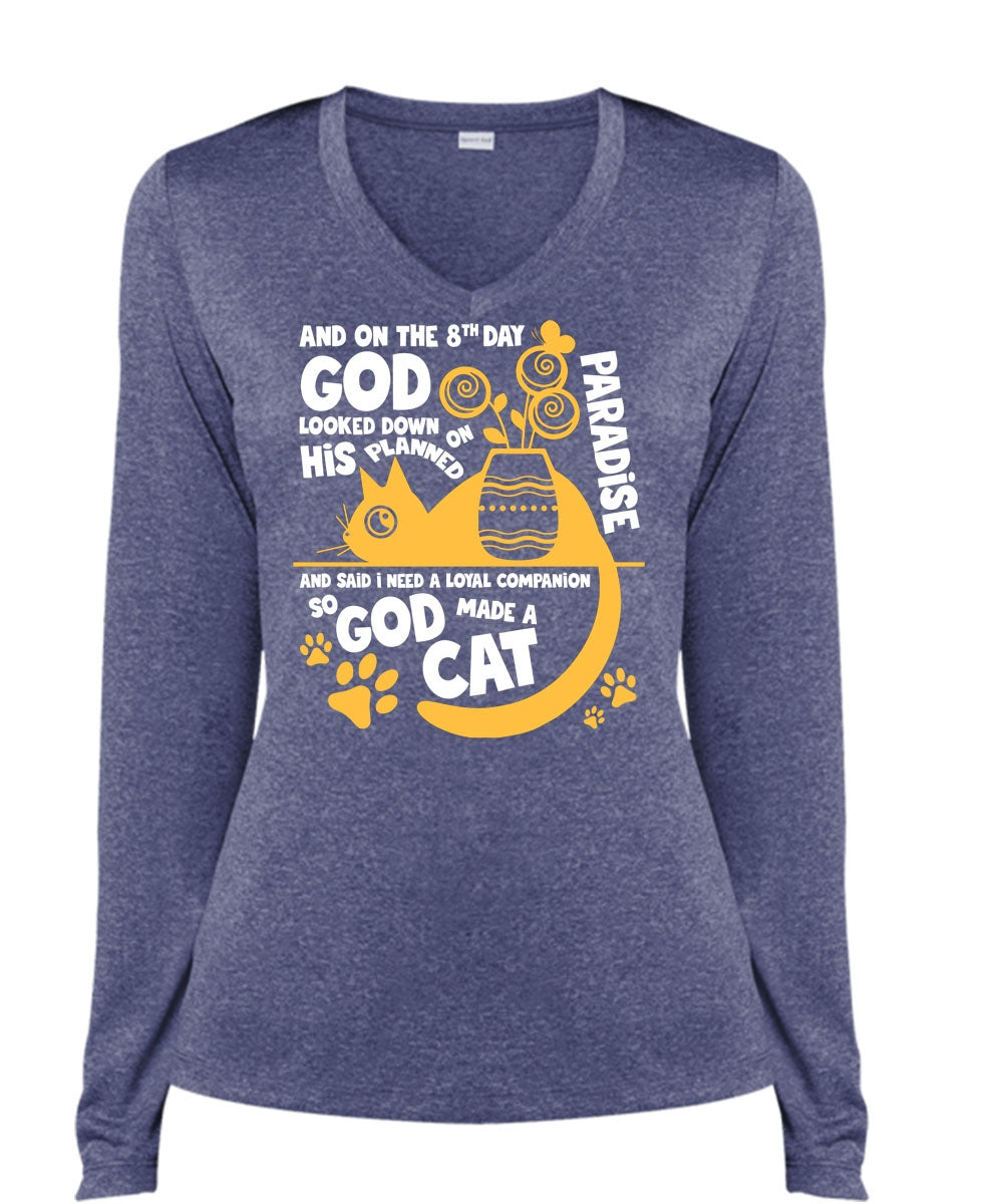 God Made A Cat T Shirt, His Planned On Paradise T Shirt, Cool Shirt (Ladies LS Heather V-Neck)
