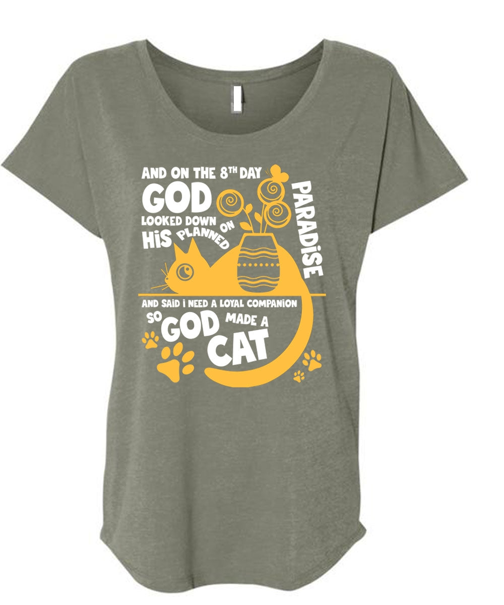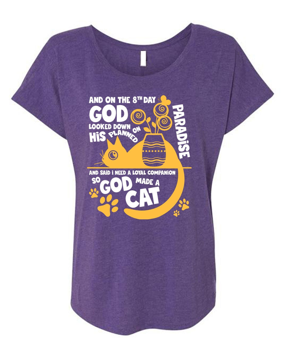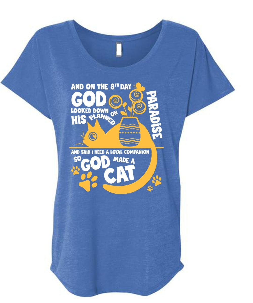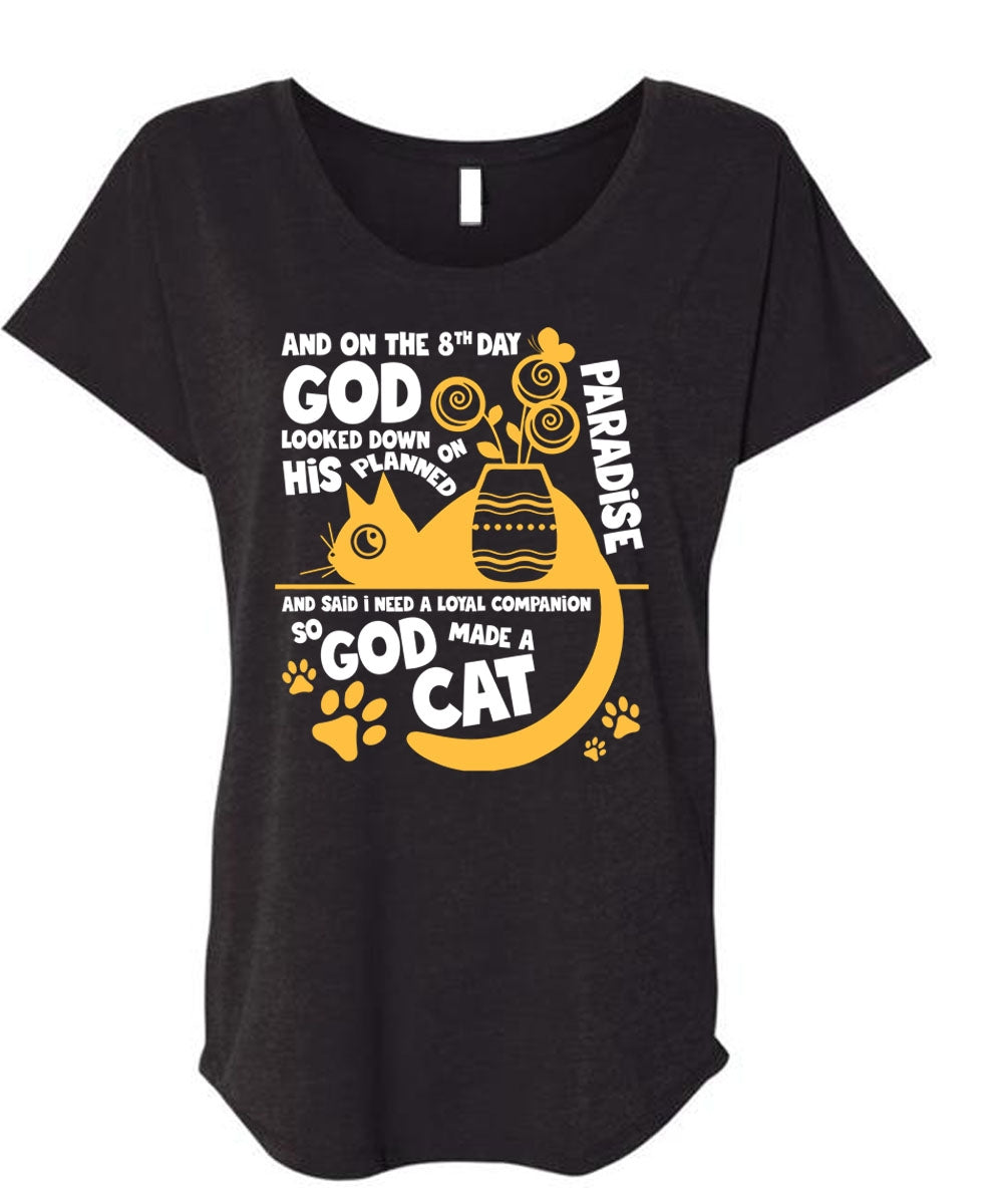 God Made A Cat T Shirt, His Planned On Paradise T Shirt, Cool Shirt (Ladies' Triblend Dolman Sleeve)