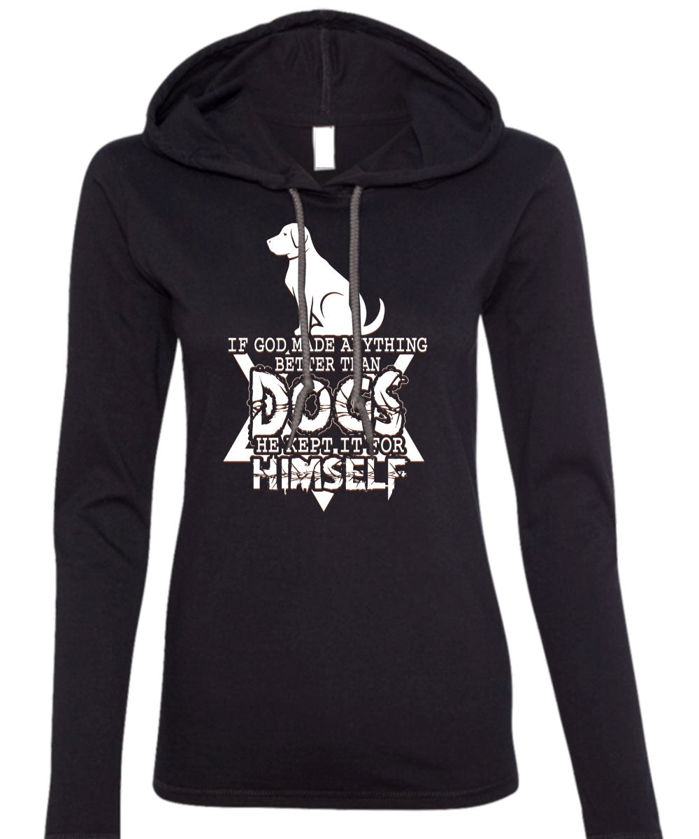 God Made Anything Better Than Dogs T Shirt, He Kept It For Himself T Shirt (Anvil Ladies Ringspun Hooded)