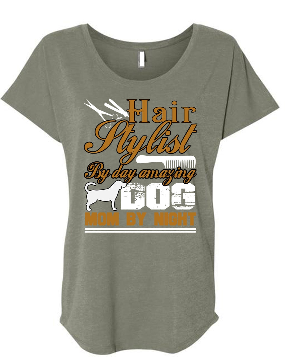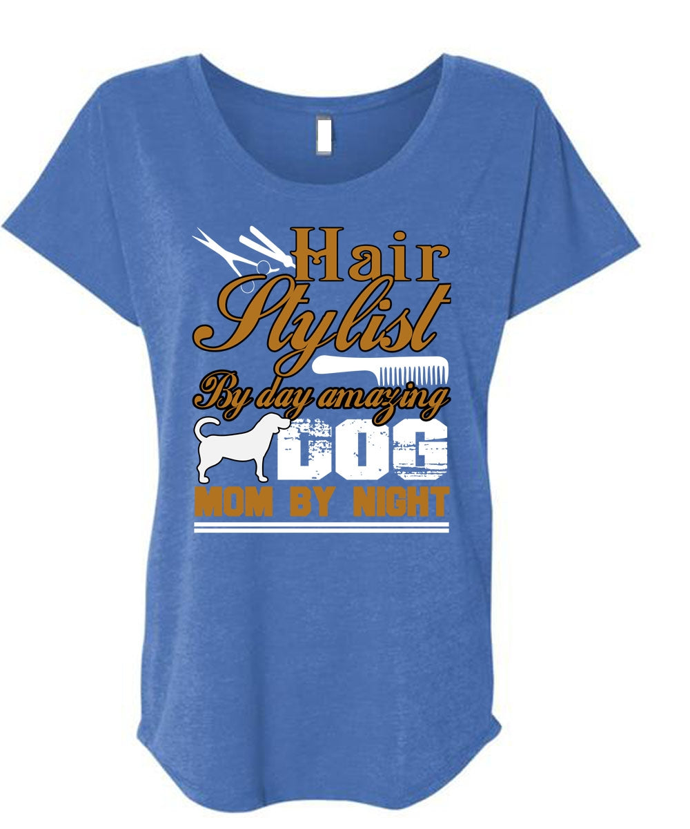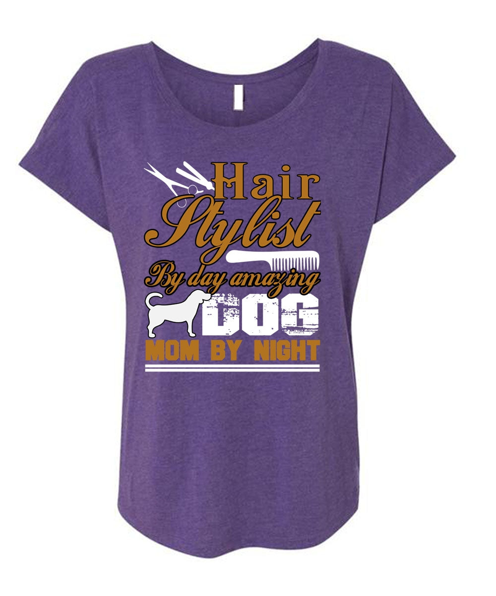 Hair Stylist By Day Amazing Dog T Shirt, Mom By Night T Shirt, Cool Shirt (Ladies' Triblend Dolman Sleeve)