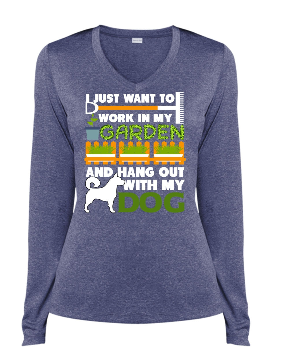 Hang Out With My Dog T Shirt, I Just Want To Work In My Garden T Shirt, Cool Shirt (Ladies LS Heather V-Neck)