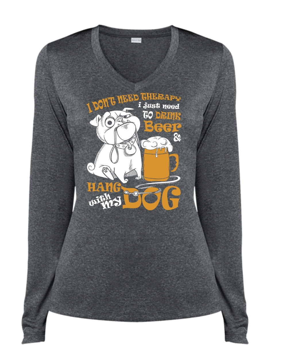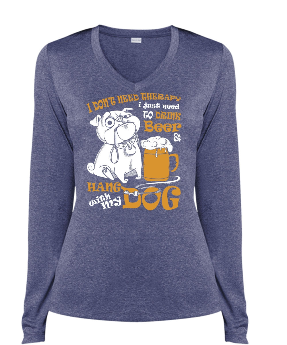 Hang With My Dog T Shirt, I Just Need To Drink Beer T Shirt, Cool Shirt (Ladies LS Heather V-Neck)