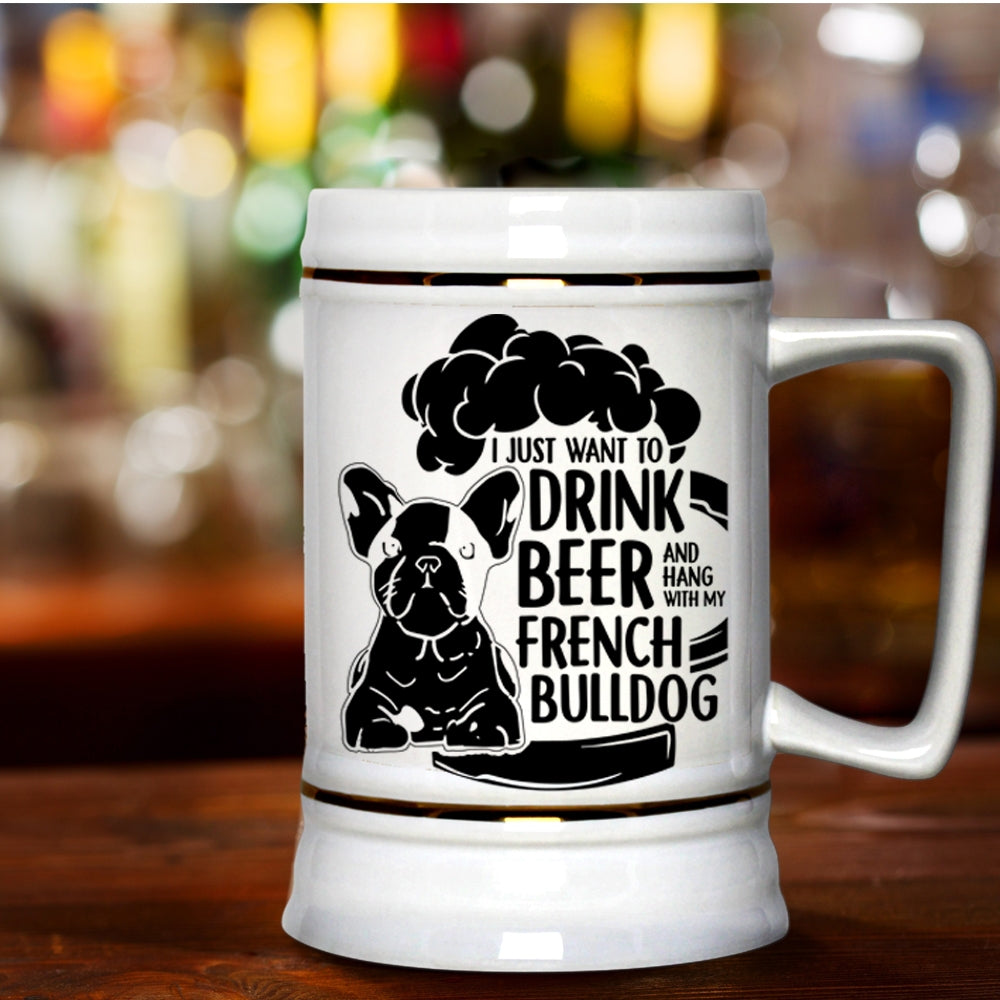 Hang With My French Bulldog Beer Stein 22oz, I Just Want To Drink Beer Beer Mug