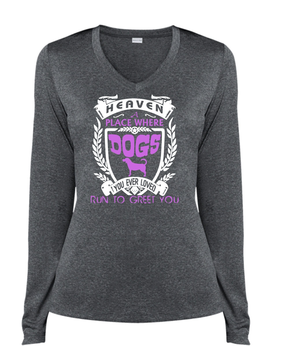 Heaven A Place Where Dogs T Shirt, You Ever Loved Run To Greet You T Shirt (Ladies LS Heather V-Neck)