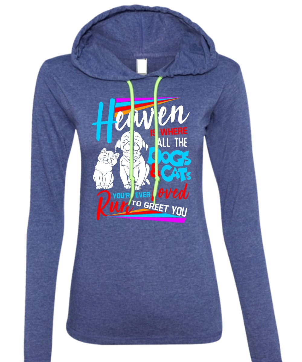 Heaven Is Where All The Dogs And Cats T Shirt, You're Ever Loved Run T Shirt (Anvil Ladies Ringspun Hooded)