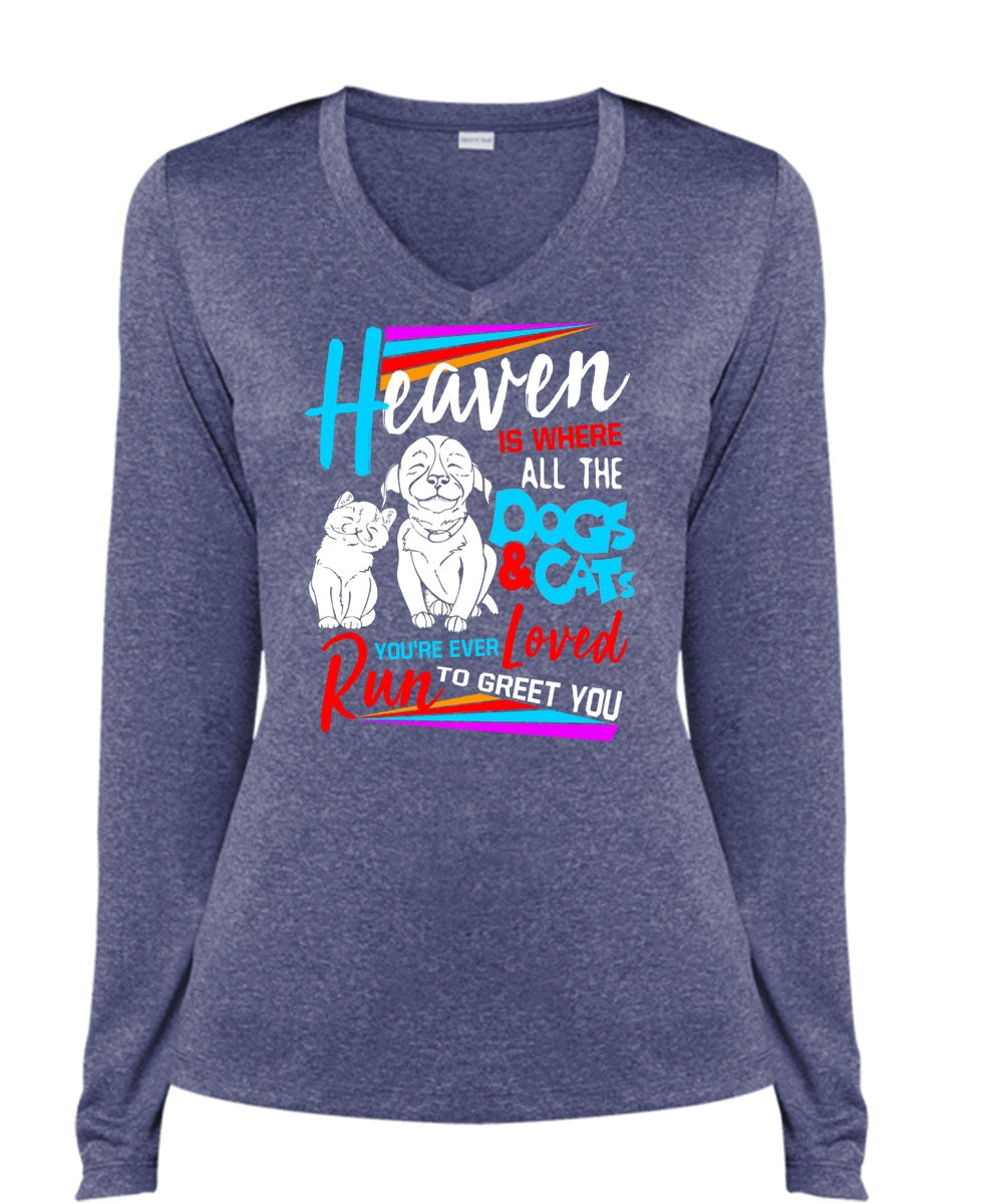 Heaven Is Where All The Dogs And Cats T Shirt, You're Ever Loved Run T Shirt, Cool Shirt (Ladies LS Heather V-Neck)