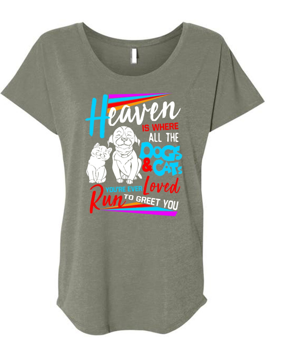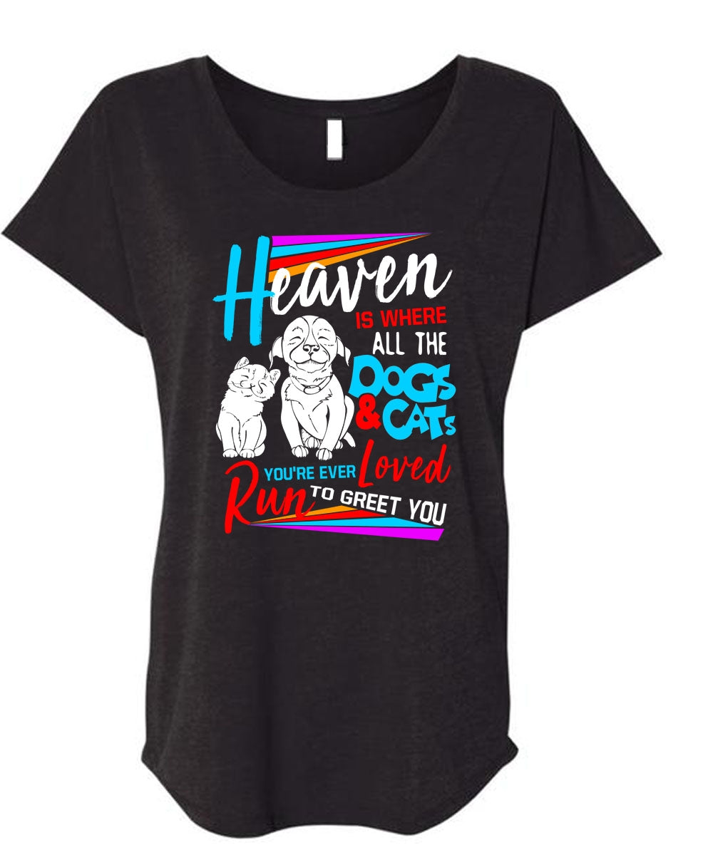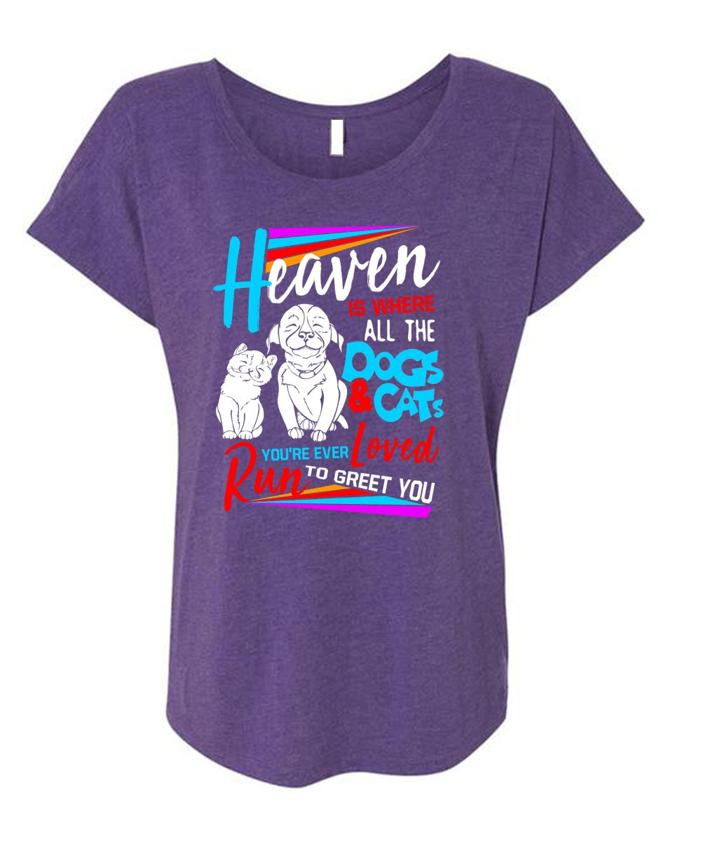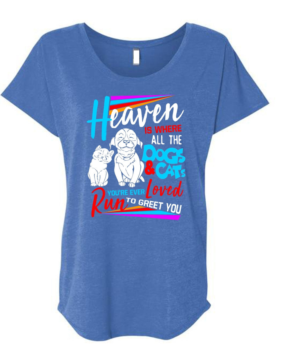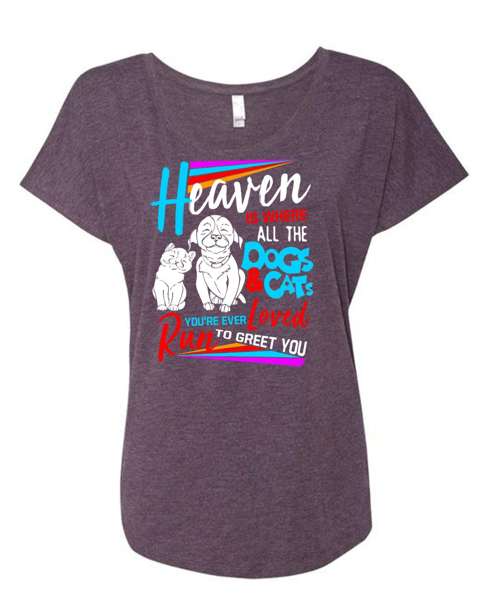 Heaven Is Where All The Dogs And Cats T Shirt, You're Ever Loved Run T Shirt, Cool Shirt (Ladies' Triblend Dolman Sleeve)