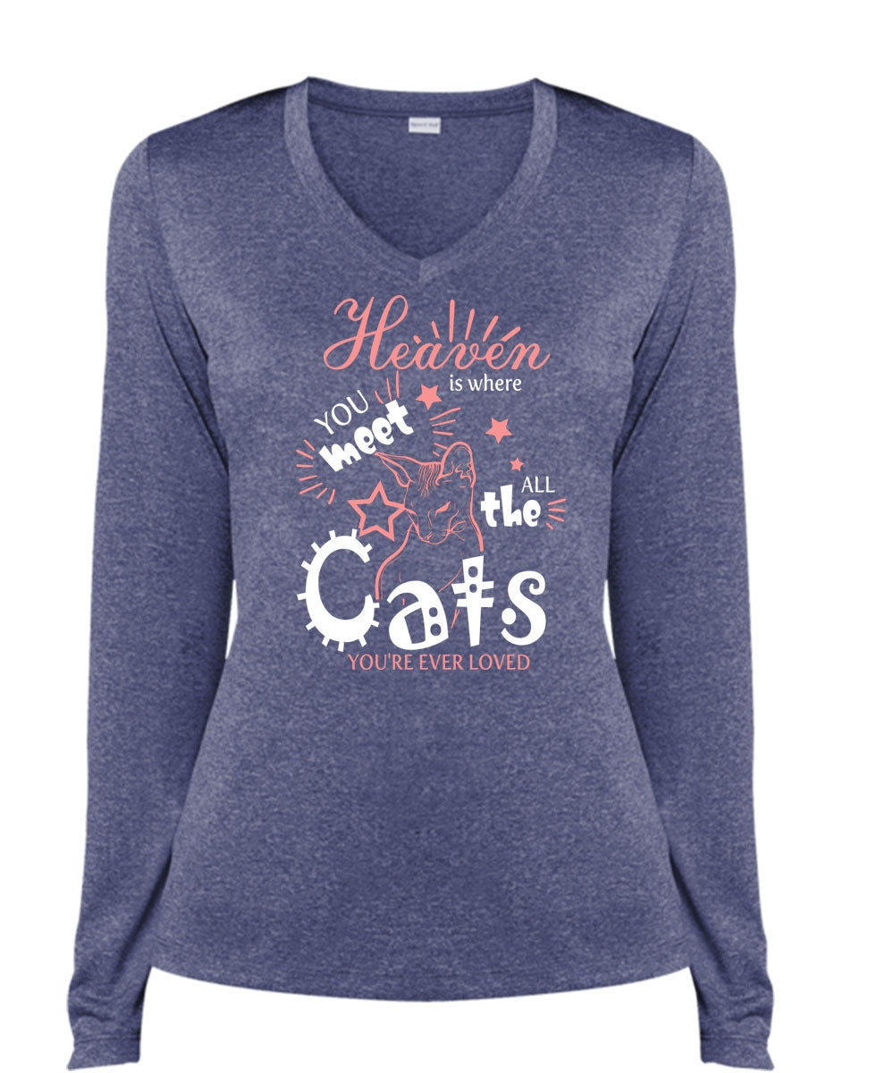 Heaven Is Where You Meet All The Cats T Shirt, You're Ever Loved T Shirt, Cool Shirt (Ladies LS Heather V-Neck)