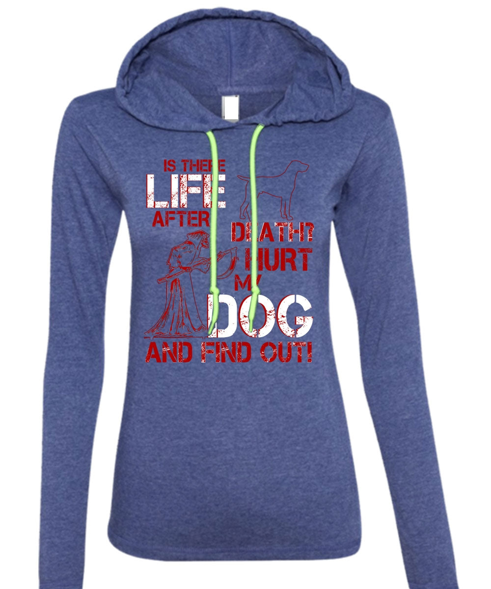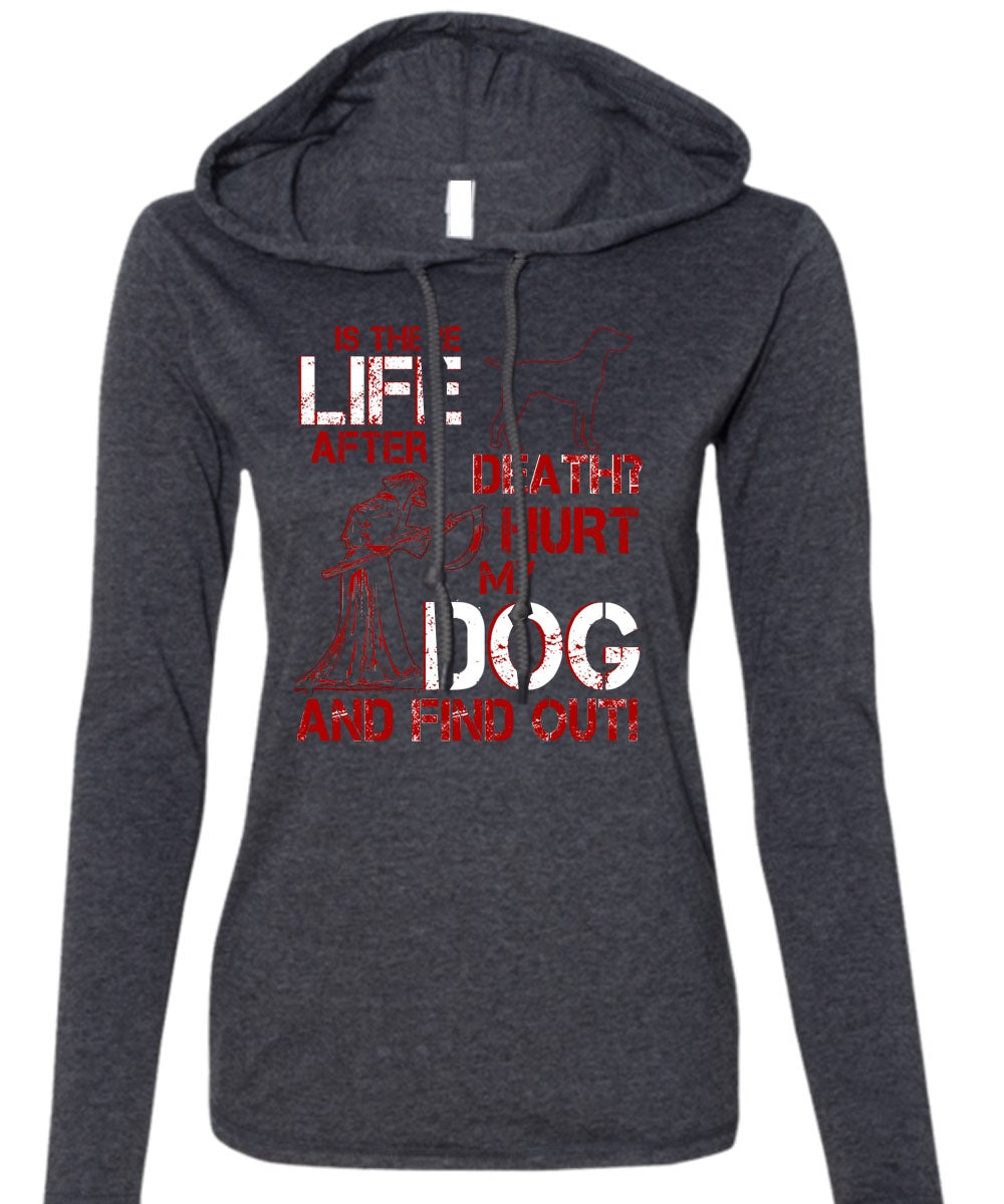 Hurt My Dog And Find Out T Shirt, Is There After Death T Shirt (Anvil Ladies Ringspun Hooded)