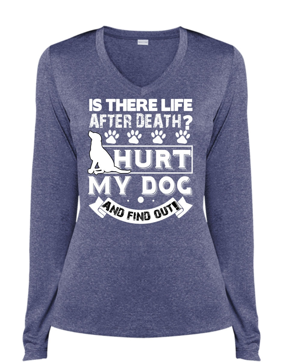 Hurt My Dog And Find Out T Shirt, Is There Life After Death T Shirt, Cool Shirt (Ladies LS Heather V-Neck)