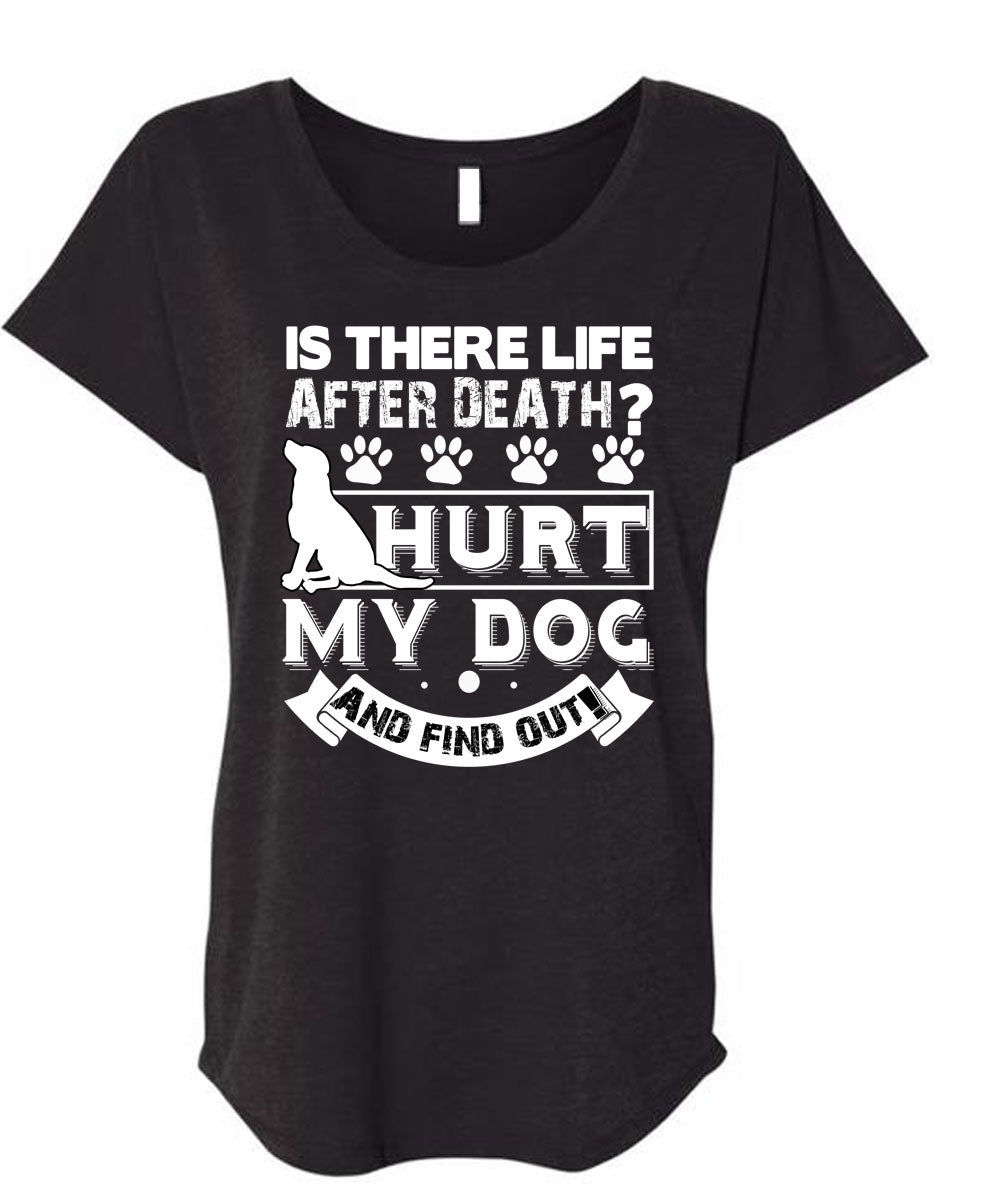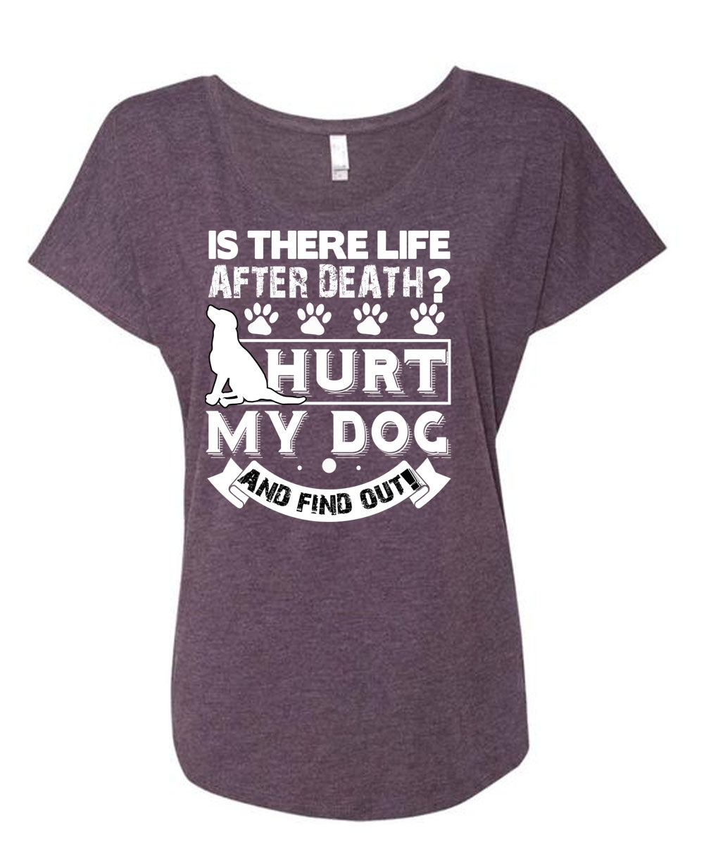 Hurt My Dog And Find Out T Shirt, Is There Life After Death T Shirt, Cool Shirt (Ladies' Triblend Dolman Sleeve)