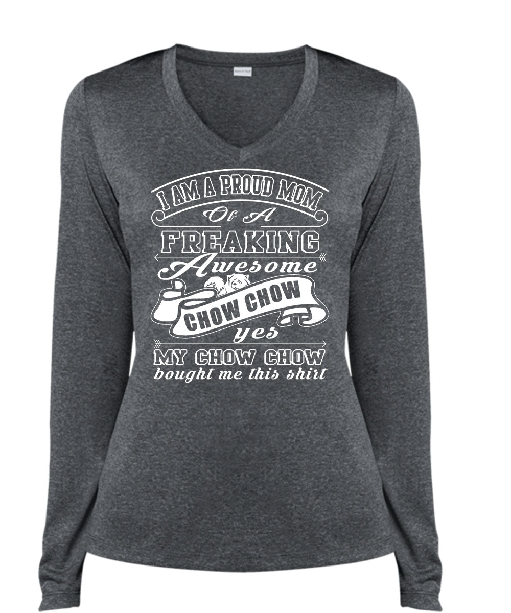 I Am A Proud Mom Of A Freaking Awesome Chow Chow T Shirt, I Love My Dog T Shirt, Cool Shirt (Ladies LS Heather V-Neck)