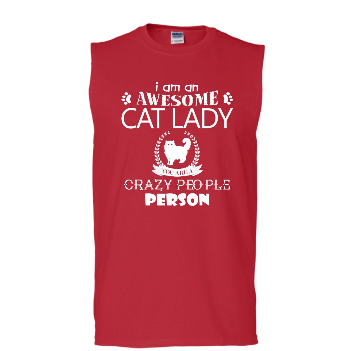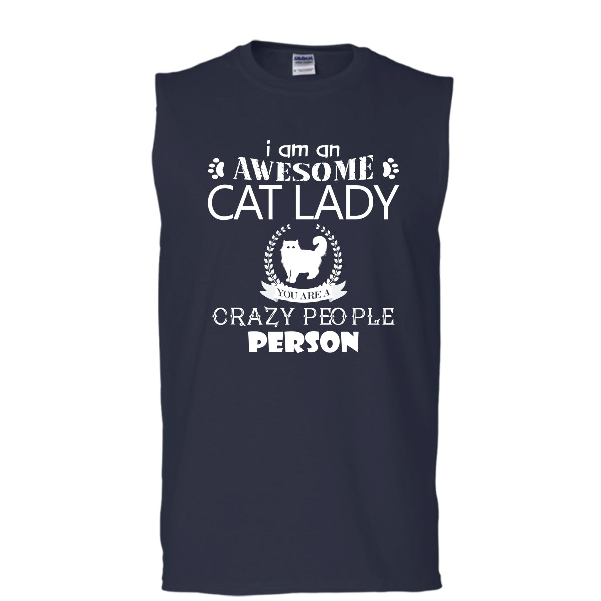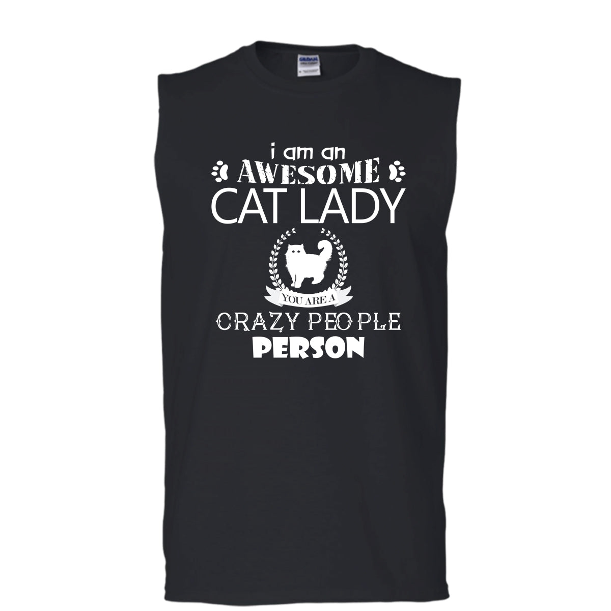 I Am An Awesome Cat Lady Shirt, Crazy People Person Shirt (Men's Cotton Sleeveless)