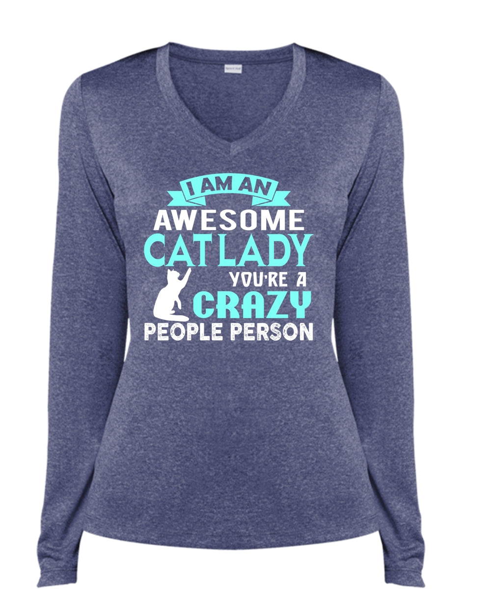 I Am An Awesome Cat Lady T Shirt, My Pets T Shirt (Ladies LS Heather V-Neck)