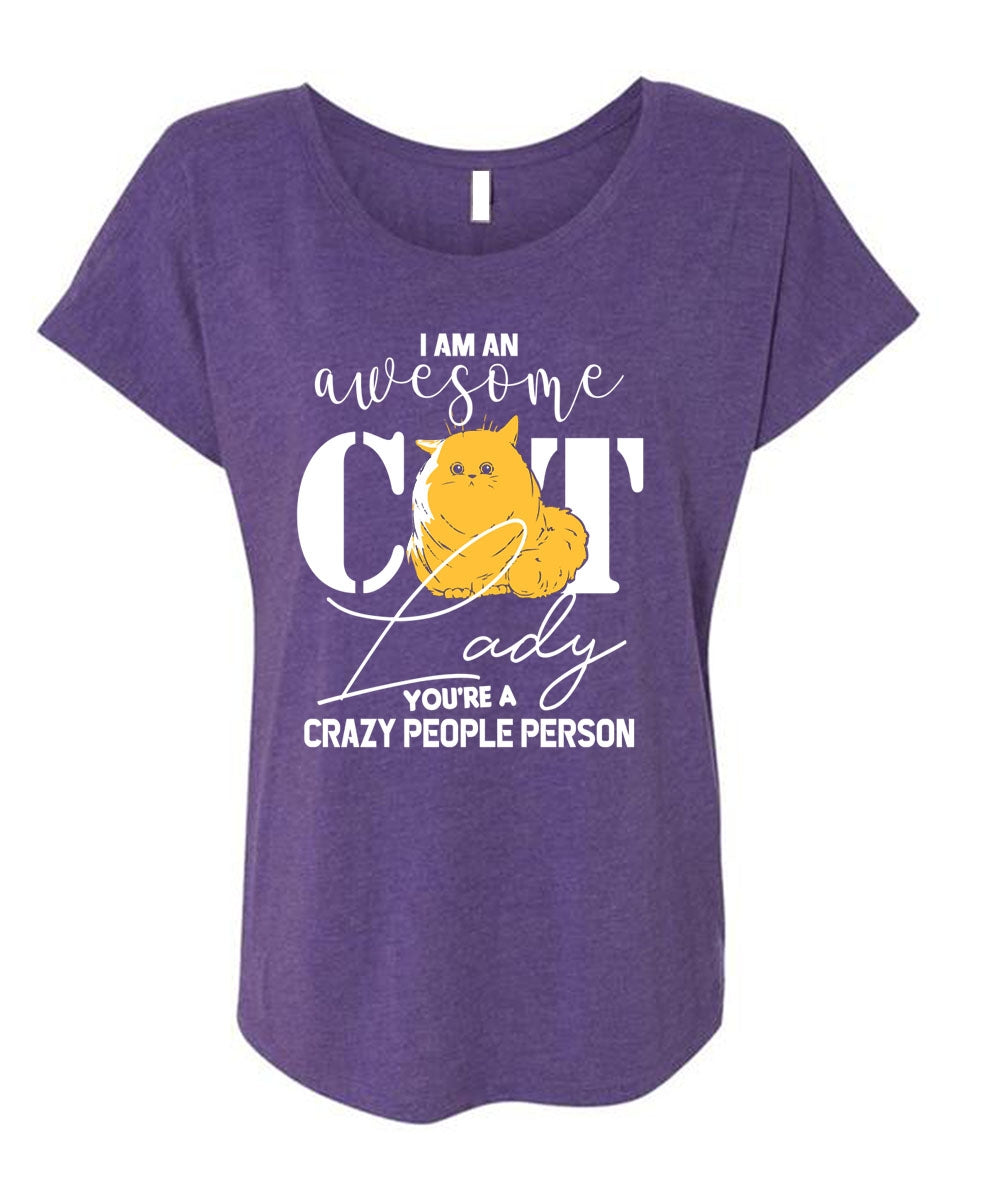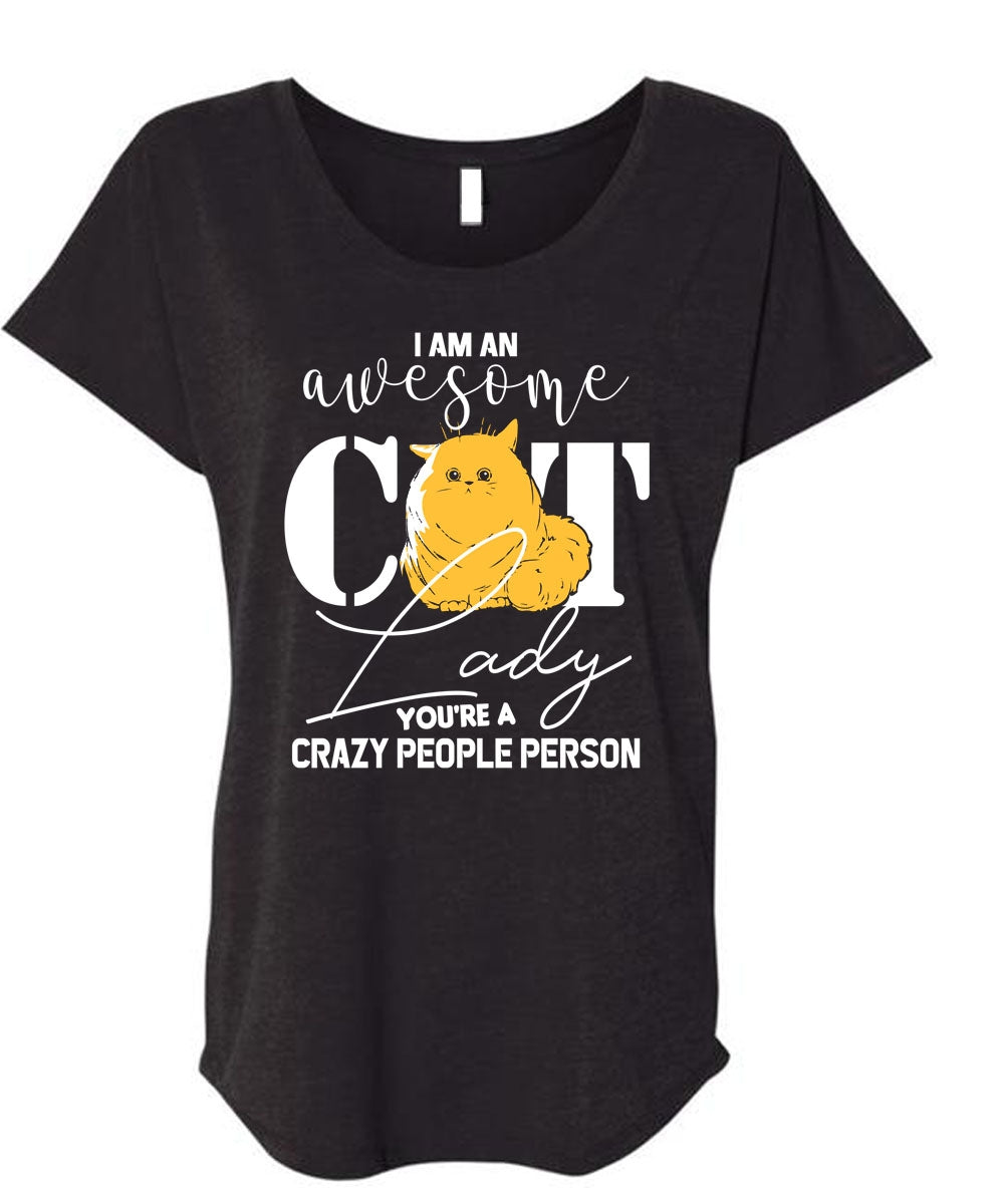 I Am An Awesome Cat Lady T Shirt, You're A Crazy People Person T Shirt, Cool Shirt (Ladies' Triblend Dolman Sleeve)