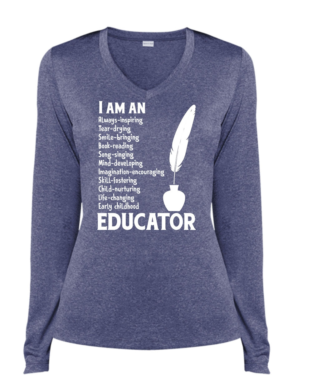 I Am An Educator T Shirt, Job T Shirt, I Love Teacher T Shirt (Ladies LS Heather V-Neck)