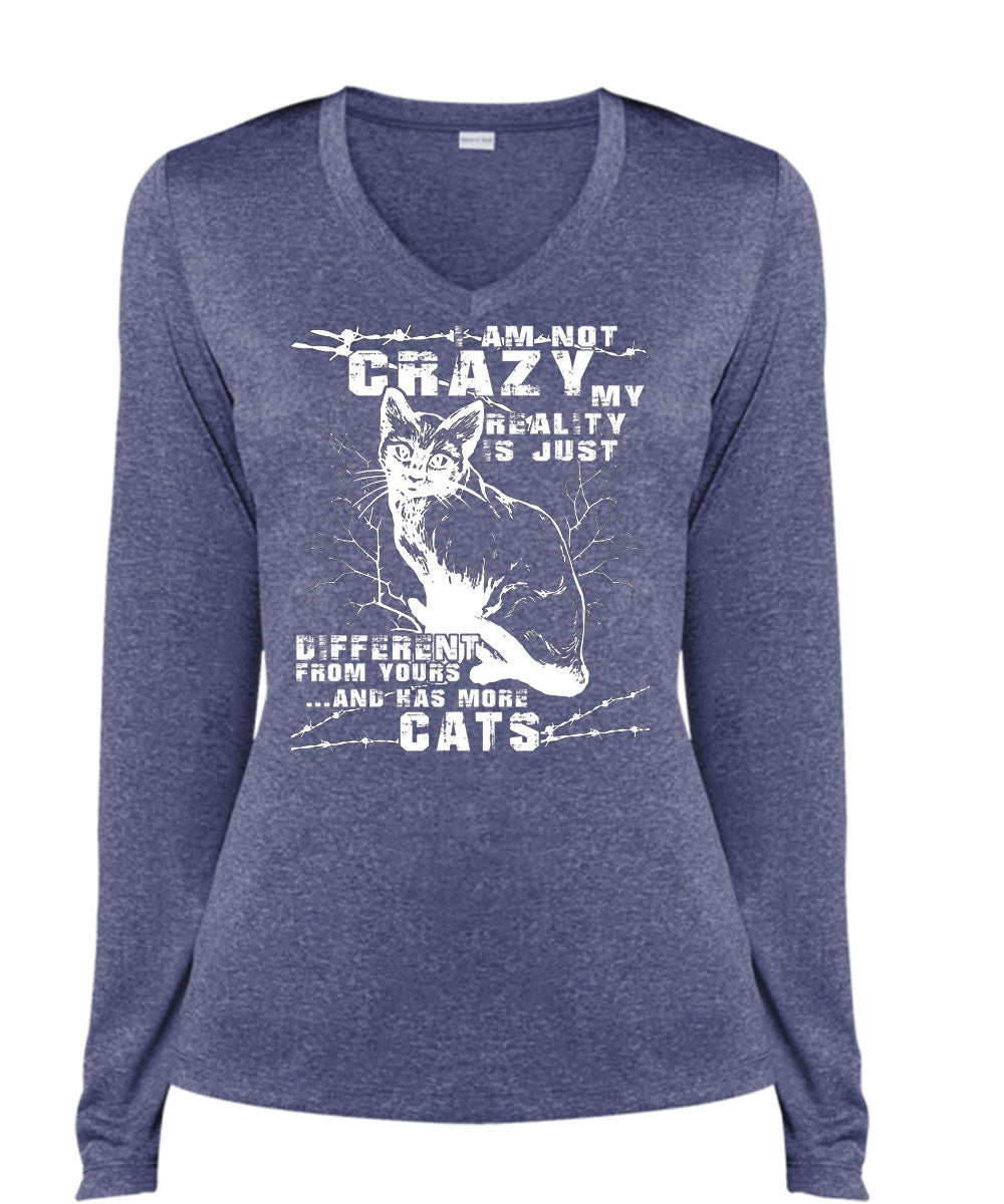 I Am Not Crazy T Shirt, Has More Cats T Shirt, Cool Shirt (Ladies LS Heather V-Neck)