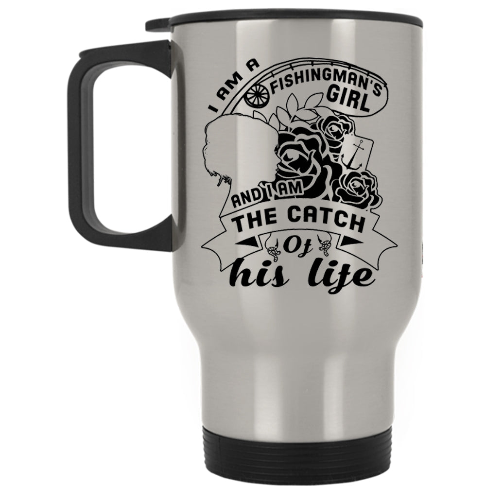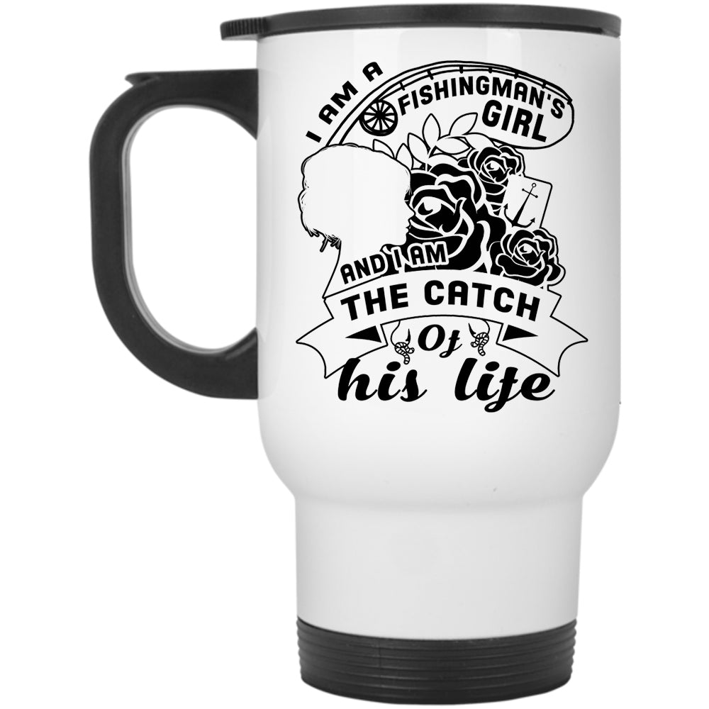 I Am The Catch Of His Life Travel Mug, I Am A Fishingman's Girl Mug